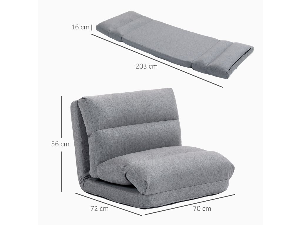 Beanbag HOMCOM s funkcí lůžka, polohovatelné opěradlo, skládací, do 120 kg, 70 x 72 x 56 cm, šedý