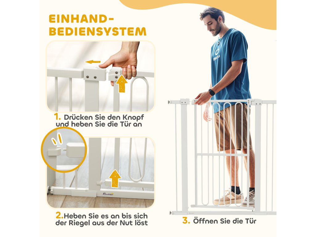 - ✔ Ovládání jednou rukou a dvojitá bezpečnostní pojistka schodišťové branky pro bezpečný a snadný přístup