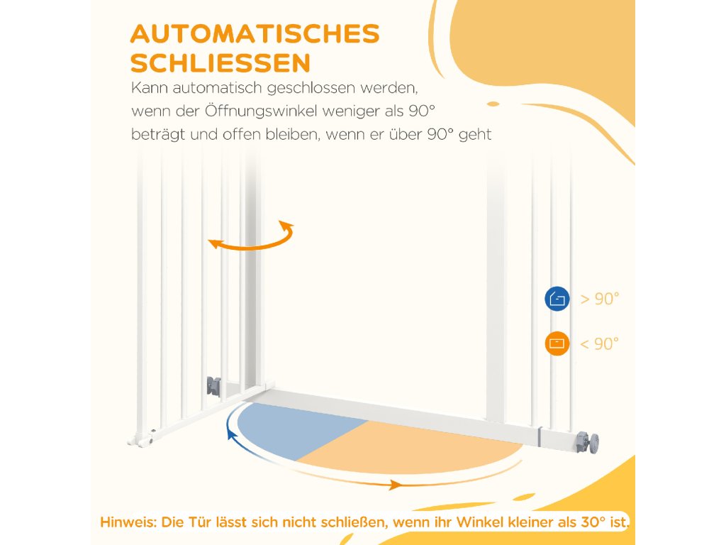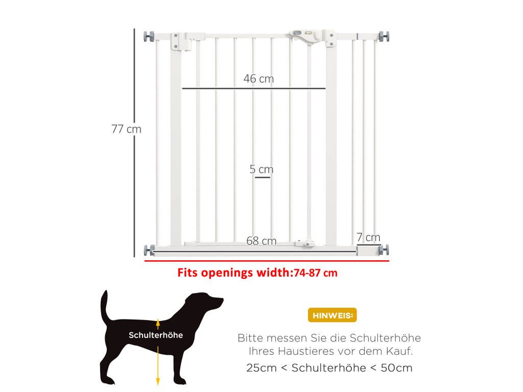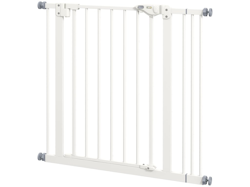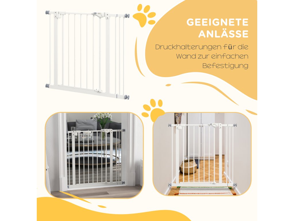 Bezpečnostní branka PawHut pro psy, zábrana, bezpečnostní branka pro domácí zvířata, kov, plast, 74-87 cm, bílá
