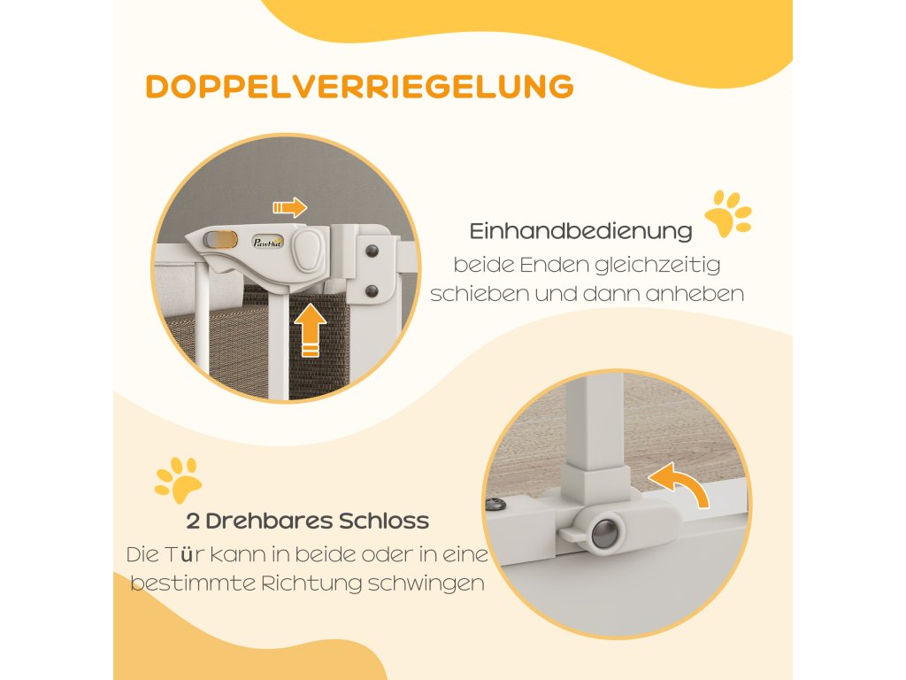 Tato branka PawHut se skvěle hodí k udržení domácích mazlíčků uvnitř, protože ji můžete použít před dveřmi, abyste je udrželi uvnitř. Je to také skvělý bezpečnostní prvek, pokud chcete oddělit domácí zvířata od dětí v domě. Brána je vyrobena z ošetřeného železa, které zajišťuje stabilitu a odolnost. Mřížka je vybavena nástavci a nastavovacími šrouby.