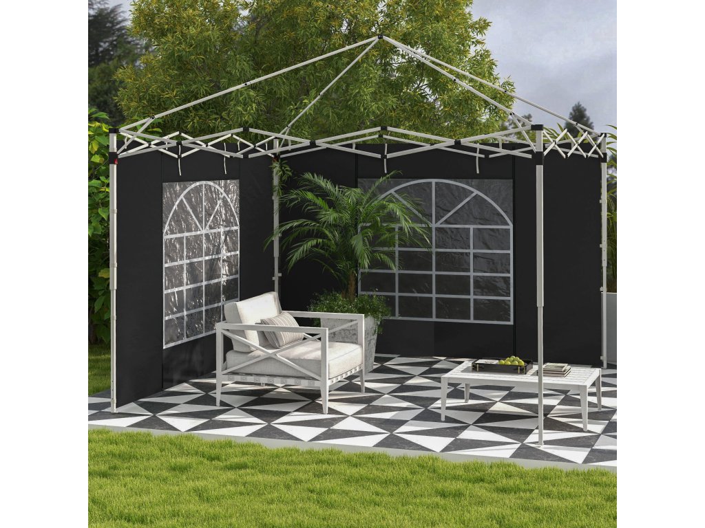 Boční stěny Outsunny pro altán 3 x 3/ 3 x 6 m, boční plachty s oknem, dveře, náhradní stěny pro párty stan, tkanina Oxford, černá barva