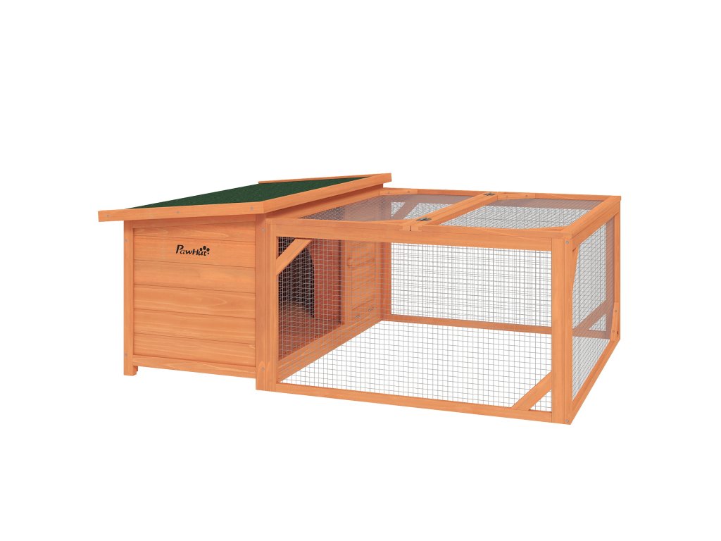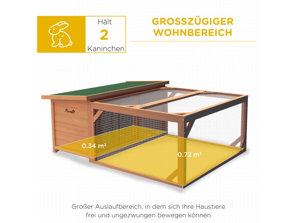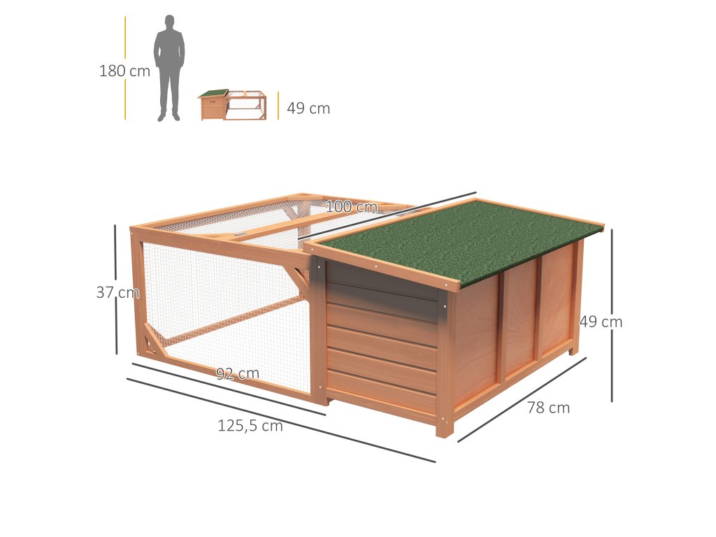 - ✔ Materiál z jedlového dřeva odolný proti povětrnostním vlivům dělá z této králíkárny pro zakrslé králíky dokonalý úkryt