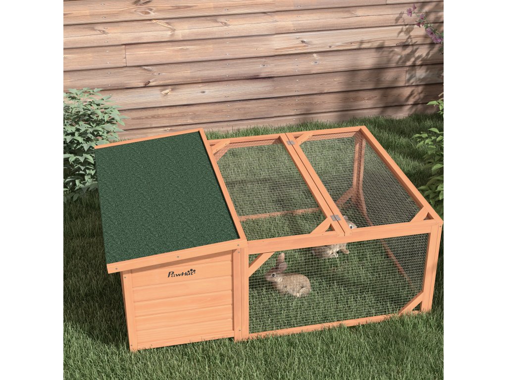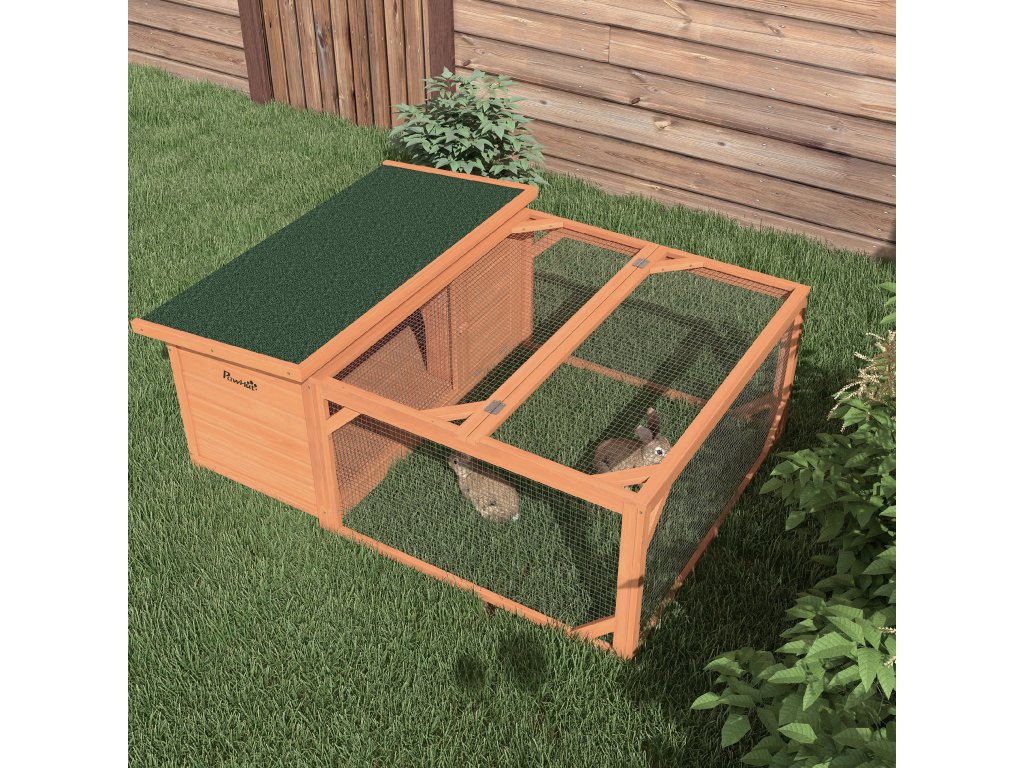 Bouda pro malá zvířata PawHut s venkovním výběhem, odnímatelná podlaha, odolná proti povětrnostním vlivům, 125,5 cm x 100 c x 49 cm Zelená + příroda