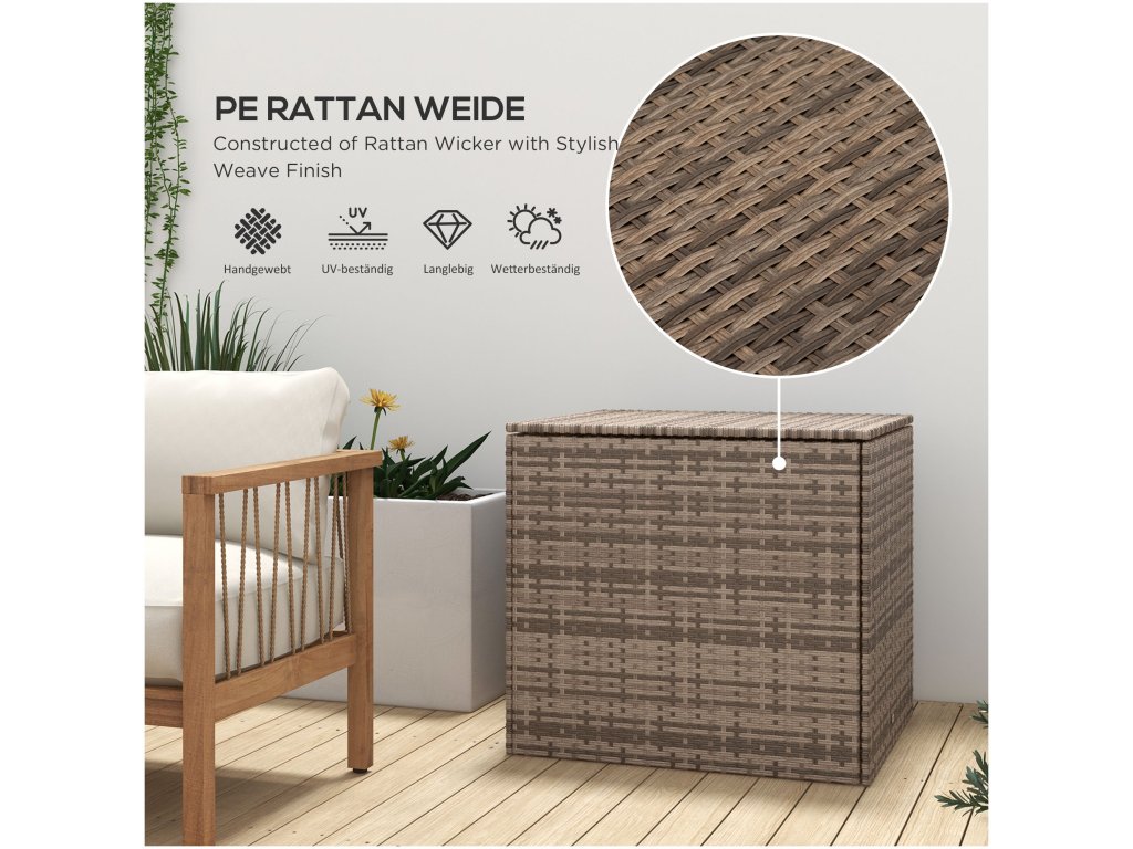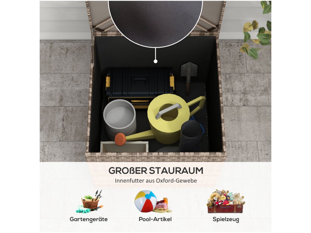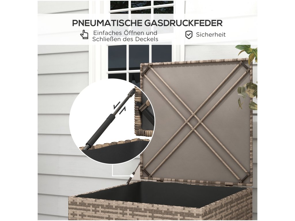 - ✔ Prostorný venkovní úložný box z polyratanu na polštáře na sezení, nářadí, oblečení a hračky