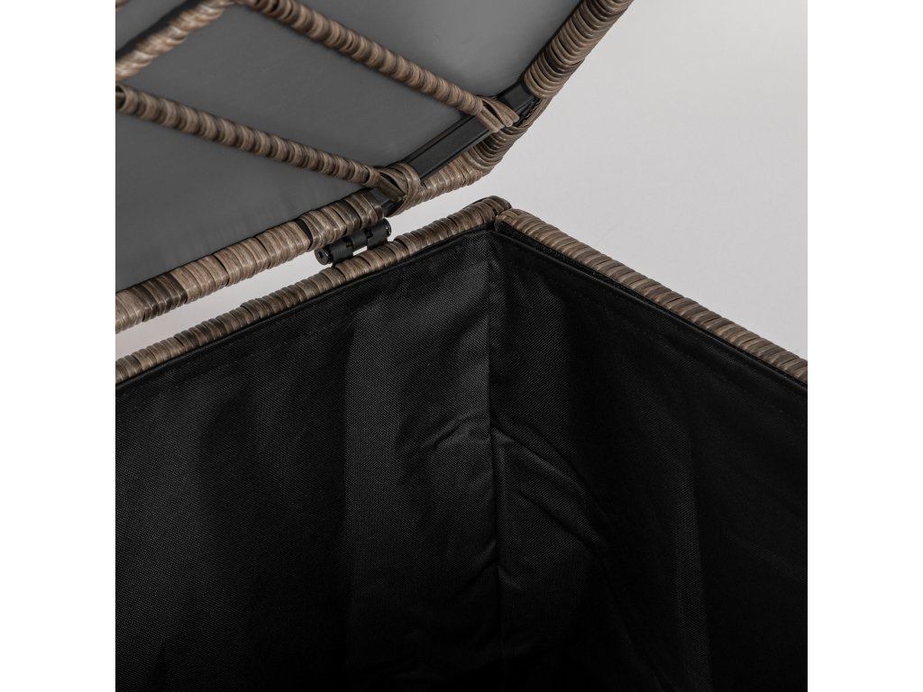 - Látková vnitřní podšívka: Náš stylový úložný box z polyratanu je vybaven kvalitní vnitřní podšívkou z polyesteru Oxford, která poskytuje dodatečnou ochranu vašich předmětů. Díky této podšívce můžete bezpečně a v suchu uložit své polštáře a doplňky