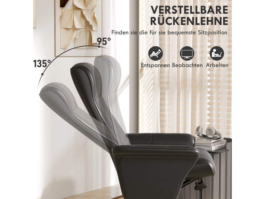 Flexibilně nastavitelné: Snadno si najděte svou ideální polohu pro odpočinek! Opěradlo lze nastavit až do úhlu 135° jednoduchým pohybem ruky, zatímco TV křeslo s funkcí polohování se může otáčet o 360°.