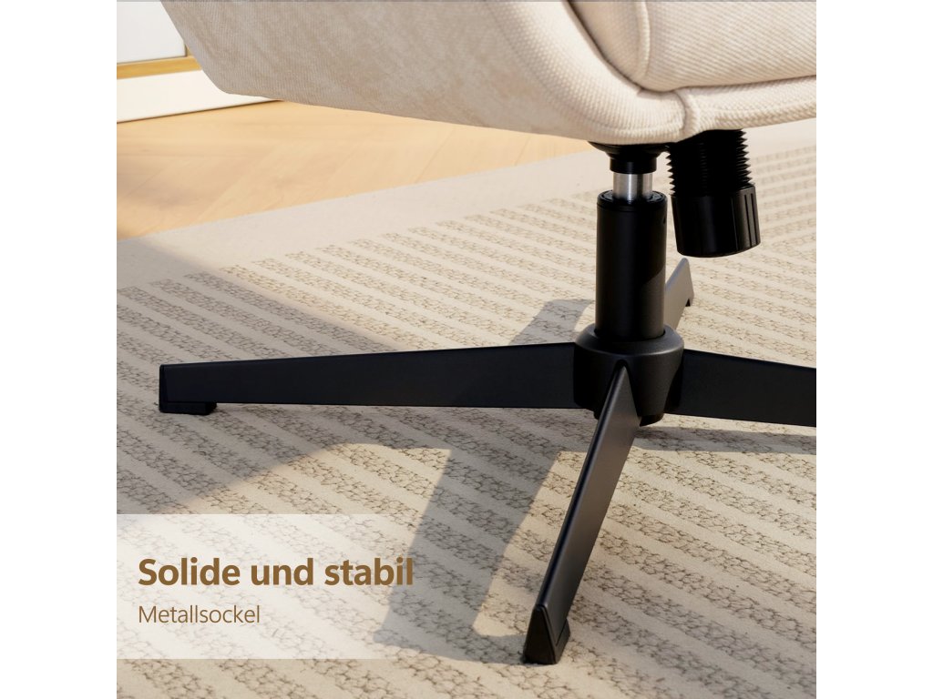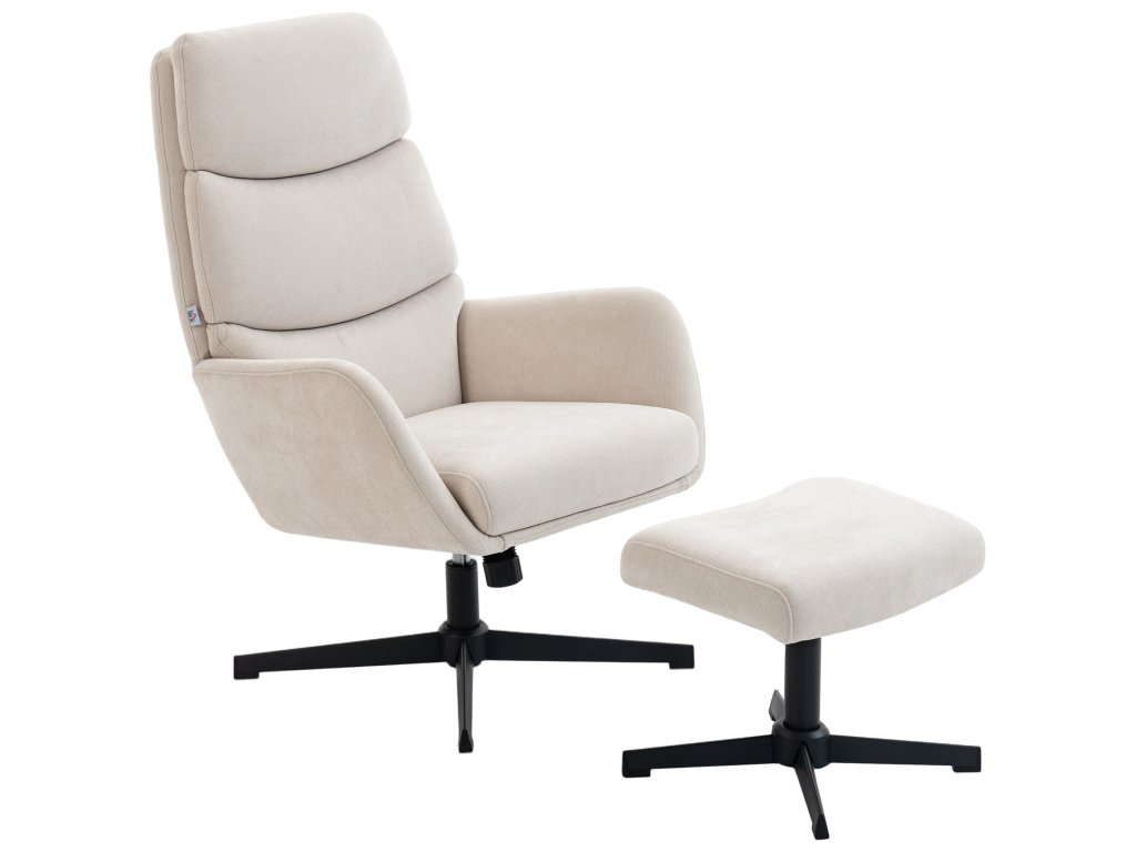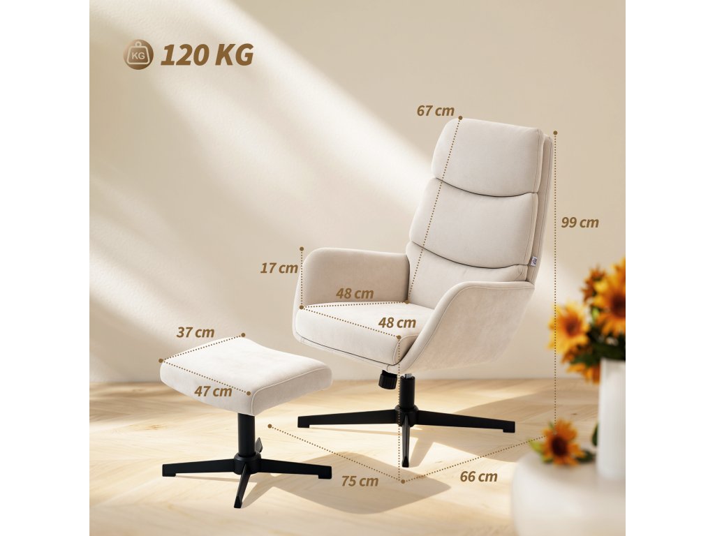 Čalouněné křeslo HOMCOM s podnožkou, křeslo s vysokým opěradlem, kovová základna, do obývacího pokoje, ložnice, béžové