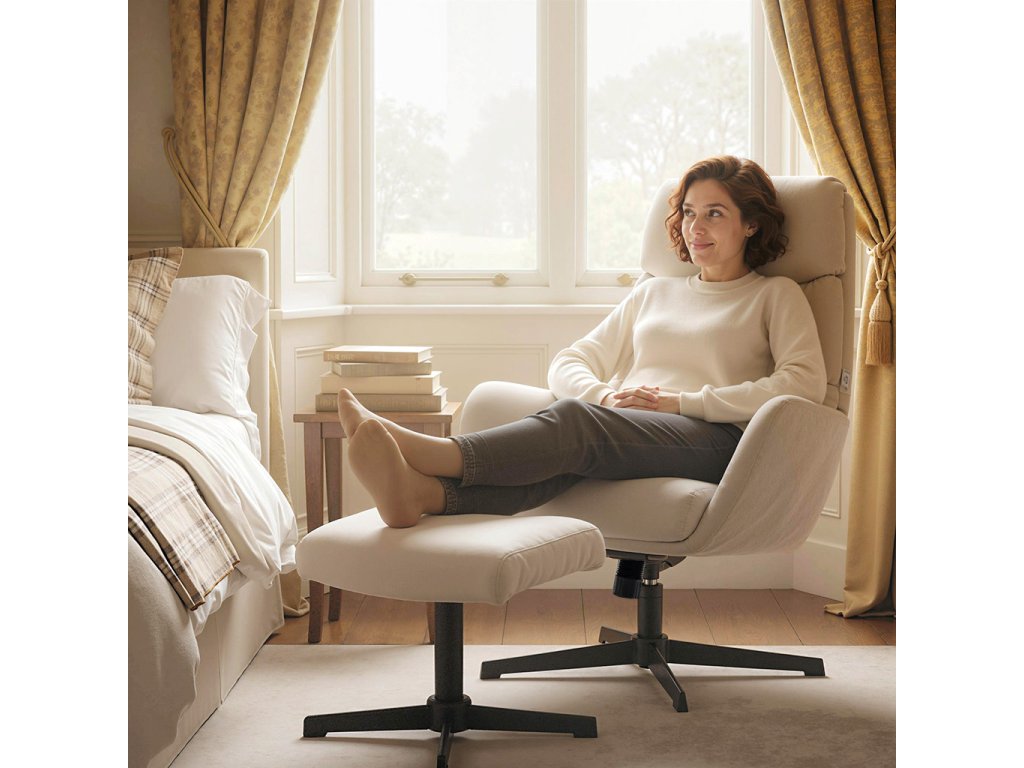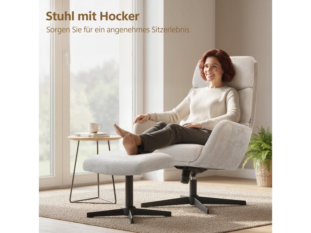 Stabilní konstrukce: Díky vícevrstvé konstrukci a stabilní kovové křížové základně s plastovými nohami tato židle a podnožka unesou až 120 kg a poskytují bezpečnou a stabilní základnu pro relaxaci.