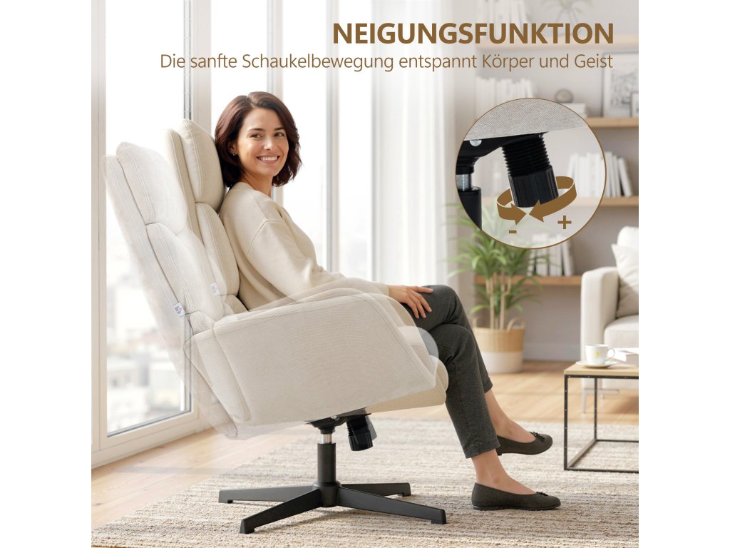 Cítíte se po dlouhém dni vyčerpaní? Je těžké relaxovat, když vám běžné židle způsobují bolesti krku a zad. Odpočiňte si v polohovacím křesle HOMCOM s podnožkou. Vysoké opěradlo podepře vaši hlavu a jemné houpání zklidňuje stres. Toto křeslo, čalouněné prodyšnou látkou s imitací lnu, je vaší osobní oázou pro okamžitou relaxaci a omlazení doma.