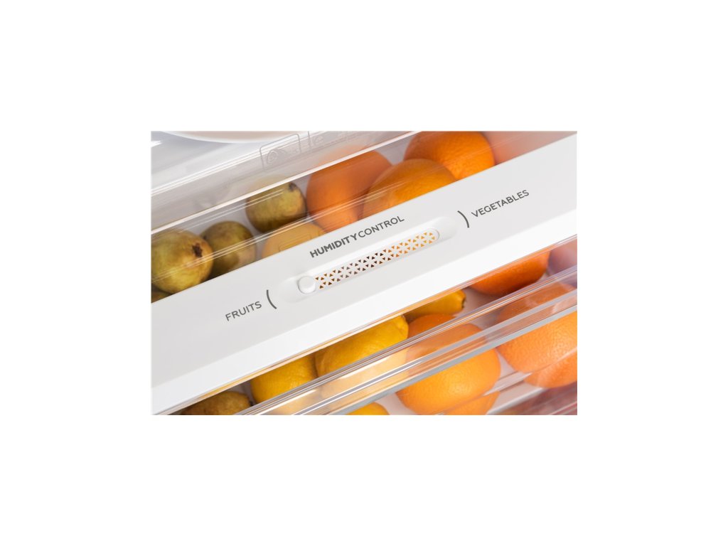 Prostor chladničky rozdělují 3 skleněné police z bezpečnostního skla, díky kterým budete mít vždy přehled o všech surovinách, 2 objemné transparentní šuplíky vám zase poslouží na uchovávání ovoce a zeleniny. Lednici nechybí ani FRESH zóna pro uchovávání čerstvého masa a ryb. Úložný prostor doplňují 4 praktické přihrádky na dveřích, které jsou vhodné na uchovávání mléka či studených omáček.