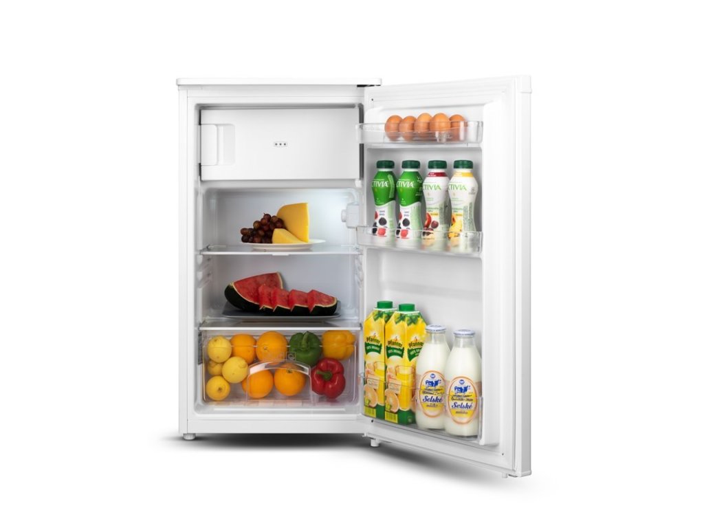 Typ: volně stojící Konstrukce chladničky: jednodveřová Provedení chladničky: s mrazicím prostorem Umístění mrazicího prostoru: mraznička nahoře Umístění vestavby: není vestavná Objem celkem (l): 81 Objem chladničky (l): 70 Objem mrazničky (l): 11 Počet oddělených prostor v mrazničce: 1 Klimatická třída: N Nulová zóna (0–3 °C): NE Hvězdičkové označení mrazicího prostoru: *** Mrazicí výkon (kg / 24 hod.): Doba skladování při poruše (hod.): 5 Beznámrazová = No Frost: NE Energetická třída 2021: E Úsporný spotřebič: NE Spotřeba energie za rok (kWh/rok): 135 Odhadované náklady chlazení za 1 rok (Kč): 945 Odhadované náklady chlazení za 5 let (Kč): 4725 Odhadované náklady chlazení za 10 let (Kč): 9450 Automatické odmrazování: ne Oddělená regulace: NE Superchlazení: NE Supermrazení: NE Dávkovač vody: bez dávkovače vody Výrobník ledu: bez výrobníku ledu Varovný signál: NE Displej: bez displeje Smart funkce: NE Prázdninový režim: NE Amazon Alexa: NE Google Home: NE Vlastní systém: NE Rozšířená záruka značky: ANO Rozšířená záruka: ETA Prodlužka záruky Gastro: NE Připojení na vodu: NE Bez připojení na vodu: ANO Změna otevírání dveří: ANO Antibakteriální úprava: NE Držák na láhve: NE Typ osvětlení: LED Hlučnost u chlazení (dB): 40 Třída hlučnosti: C Ochrana proti otiskům prstů: NE Barva chladničky: bílá Výška chladničky (cm): 84 Šířka chladničky (cm): 48 Hloubka chladničky (cm): 50 Retro chladničky: NE Značka kvality dTest: NE Distribuce: oficiální ČR Provedení výrobku: bílá barvaIdeální do malých prostor a moderních interiérů