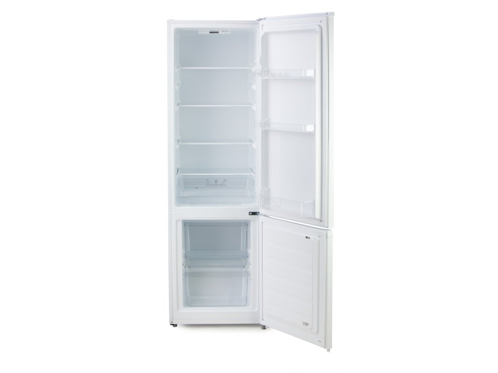 Elegantní, volně stojící lednice kombinovaná s mrazákem ve spodní části. Vnitřní čistý objem 262 litrů je rozdělen na 197 litrů lednice a 65 litrů mrazáku. Prostor lednice je vybaven 4 skleněnými policemi, prostornou zásuvkou na zeleninu, 3 dveřními policemi a energeticky úsporným LED osvětlením. Mrazák je pak členěný do 2 zásuvek.