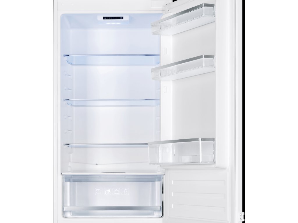 Chladicí část: Objem 195 l; 1 pevná police a 3 nastavitelné police z tvrzeného skla; 1 zásuvka na ovoce a zeleninu; LED vnitřní osvětlení; Ve dveřích velká přihrádka na láhve a 2 standardní přihrádky pro přehledné uspořádání potravin; Zásobník na vajíčka