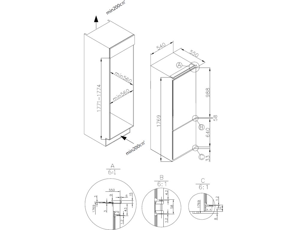 - Vestavná kombinovaná chladnička s mrazákem dole