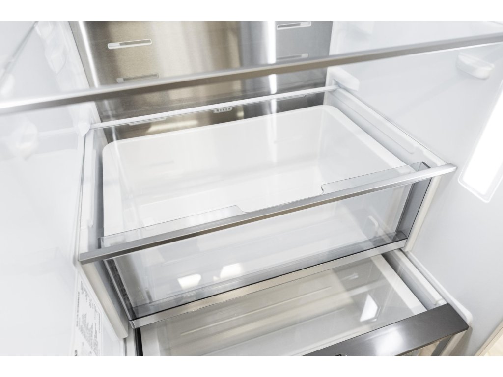 Mrazící část: Objem 100 l; Systém No Frost; Automatické odmrazování; Funkce: Rychlé mrazení; Nastavení teplot mrazničky: -15~-18 °C; Mrazící výkon 4,6 kg/24 h; 2 police z bezpečnostního skla; 3 zásuvky s průhlednou přední stěnou; Miska na kostky ledu.