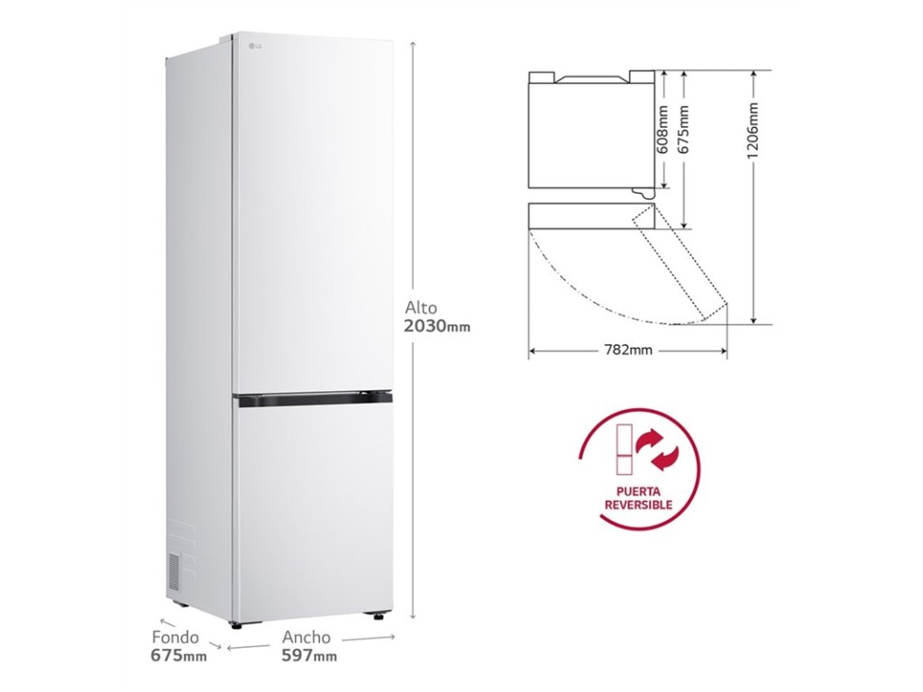 | Speciální funkce | Smart invertorový kompresor, DoorCooling+™, Total No Frost, LG ThinQ™ chytré funkce přes Wi-Fi, Zero Clearance | |