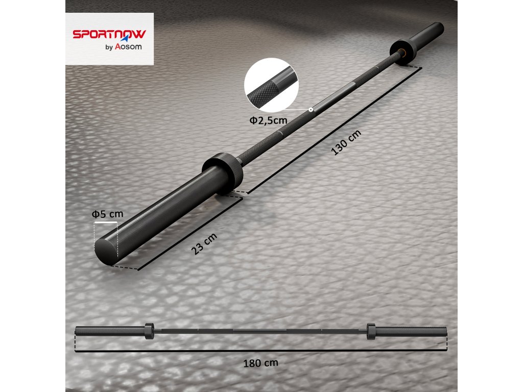 - Celkové rozměry činky: Ø5 cm x 180L cm, Nosnost: 200 kg, Čistá hmotnost: 13,5 kg, Montáž není nutná.