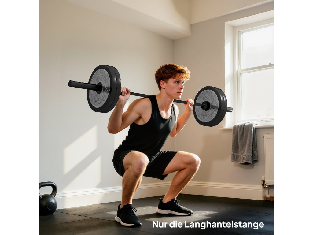 - Bezpečná vroubkovaná rukojeť: Díky 130 cm dlouhé vroubkované rukojeti a průměru 2,5 cm umožňuje tato činka pohodlnou a stabilní manipulaci, takže každý zdvih lze provádět bezpečně a soustředěně.