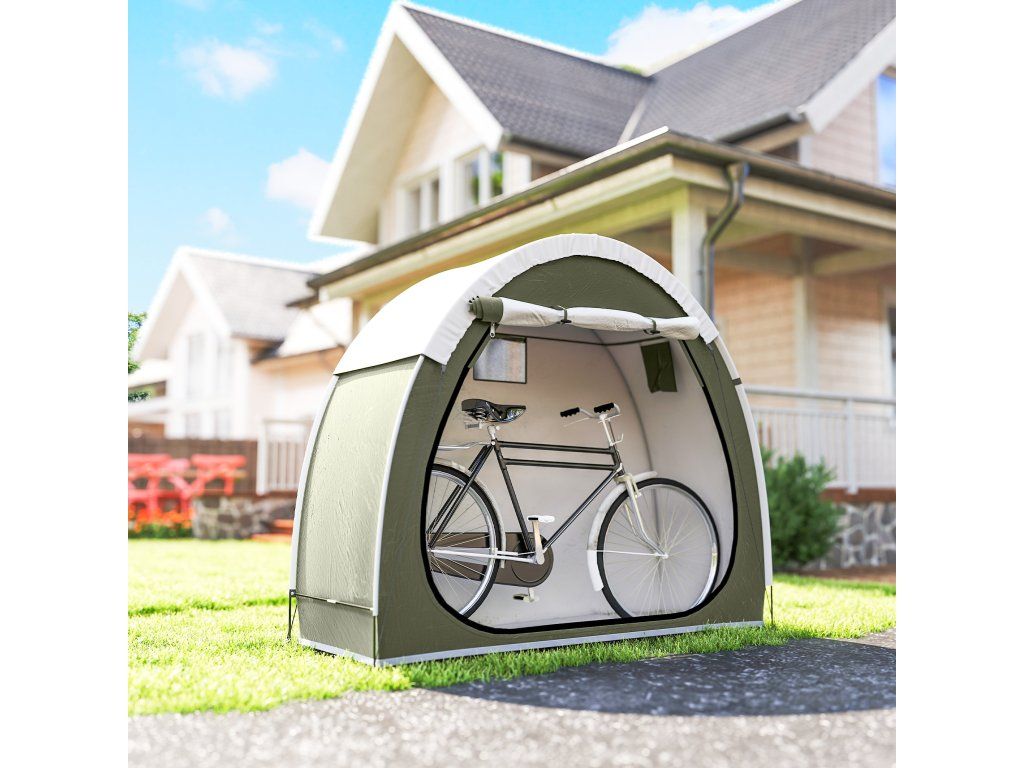 2 Řešení pro uložení kol: Tento stan na kola (185 x 73 x 165 cm) poskytuje prostor pro dvě kola, zahradní nářadí nebo vánoční ozdoby – praktický doplněk do každého venkovního prostoru.