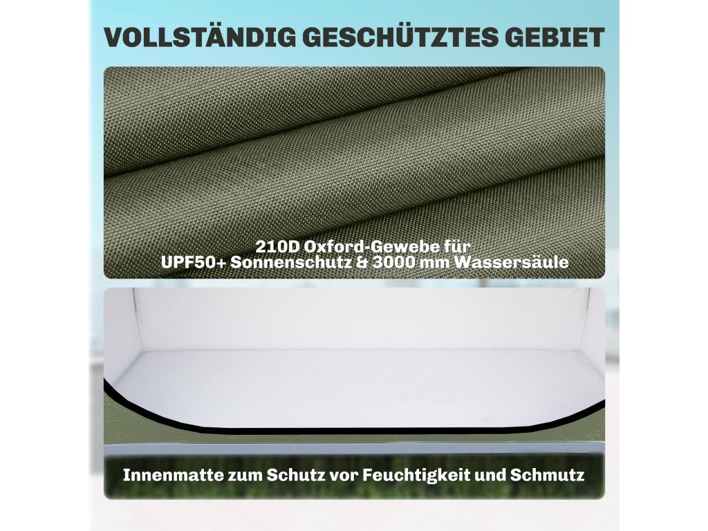 Vynikající ochrana před povětrnostními vlivy: Tento stan na kola je vyroben z oxfordské tkaniny 210D se stříbrným a PU povlakem a nabízí ochranu před sluncem UPF 50+, vodotěsnost 3000 mm a síťované okno pro větrání.