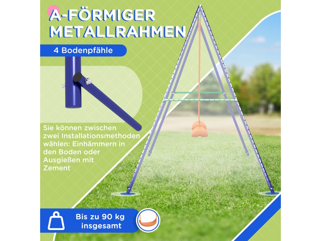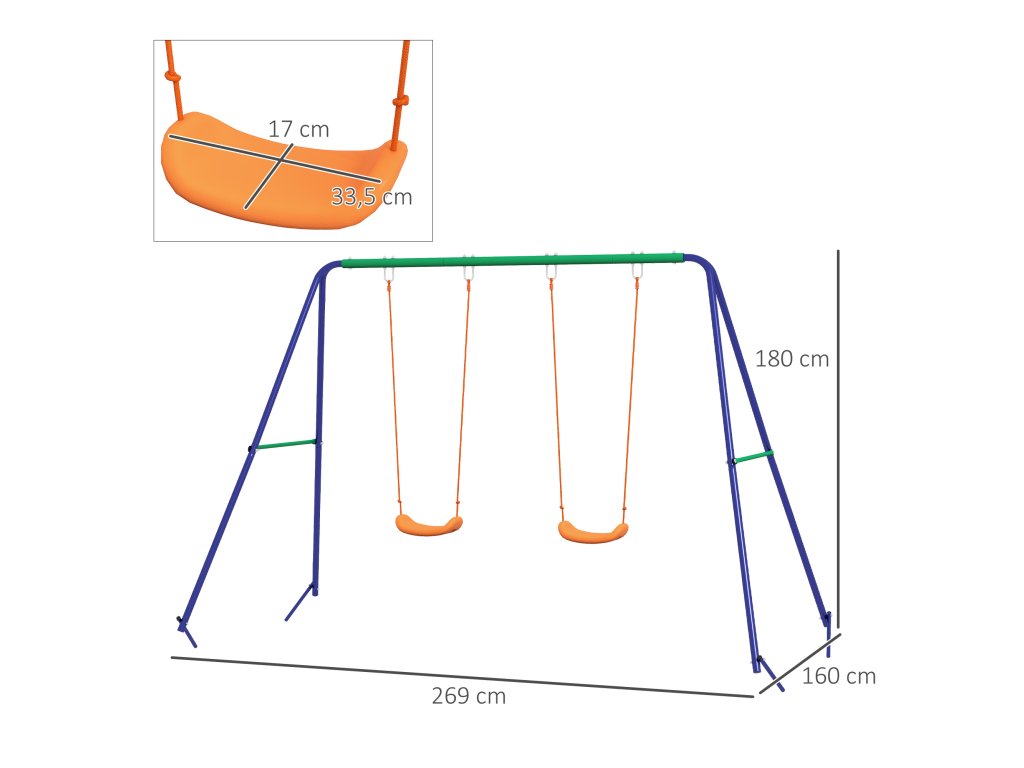 Dětská houpačka Outsunny se dvěma sedadly, pro děti od 3 do 8 let, ocel, 2,7 x 1,6 x 1,8 m