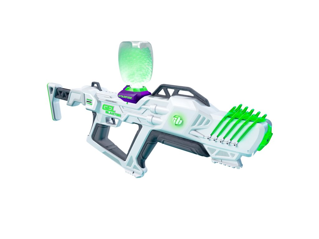 Buď středem akce za každých světelných podmínek! Starfire Activator pomocí UV světla nasvítí tvoje Starfire Gellety, které vyletí z hlavně rozzářené. Gellety jsou vidět i za tmy a hru si tak užiješ i po západu slunce.