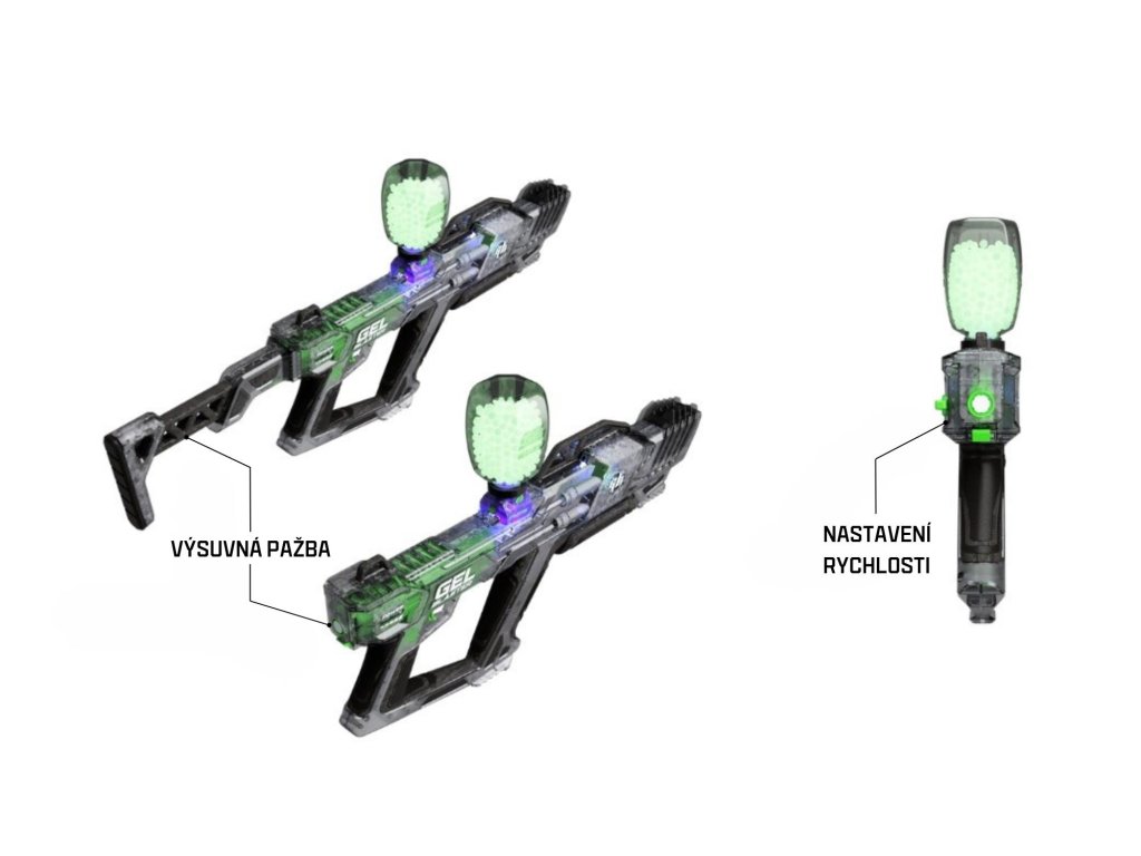 Gellety jsou netoxické, šetrné k přírodě a bezpečné jak pro děti, tak i pro domácí mazlíčky. Po zásahu se přirozeně rozloží, což minimalizuje dopad na životní prostředí. Navíc je blaster dodáván s bezpečnostními brýlemi, aby byla hra bezpečná pro všechny hráče.