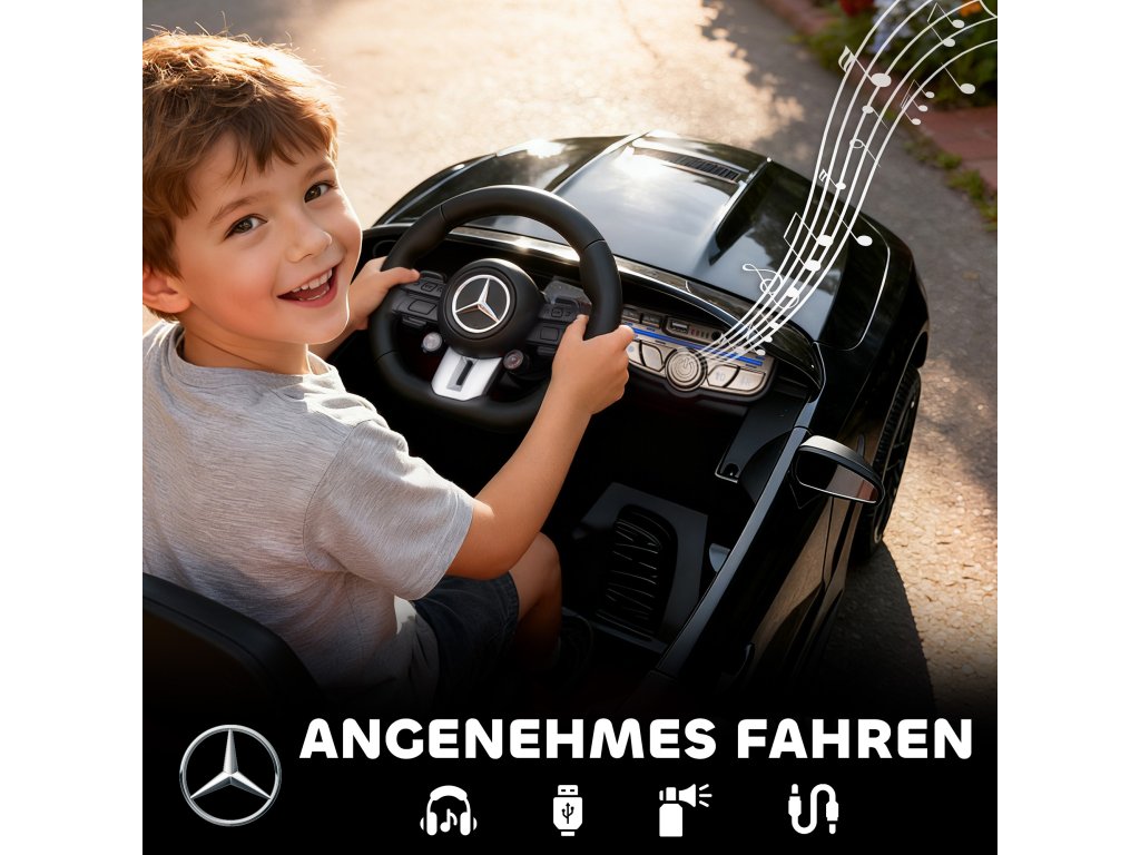 Dětské elektrické autíčko AIYAPLAY, design Mercedes, 12V motory, dálkové ovládání, LED světla, hudba, pro děti 3-6 let, černé