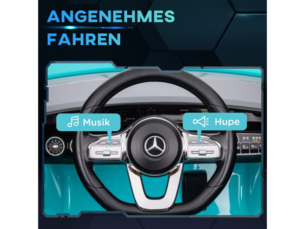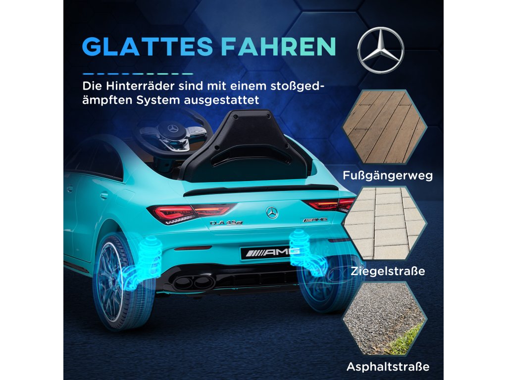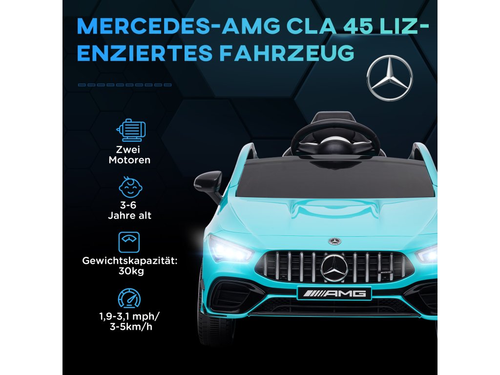 Registrační značka Mercedes: Toto dětské elektromobilní auto je vybaveno oficiální registrační značkou Mercedes-Benz AMG CLA 45 a nabízí vašim nejmenším autentický zážitek z jízdy.