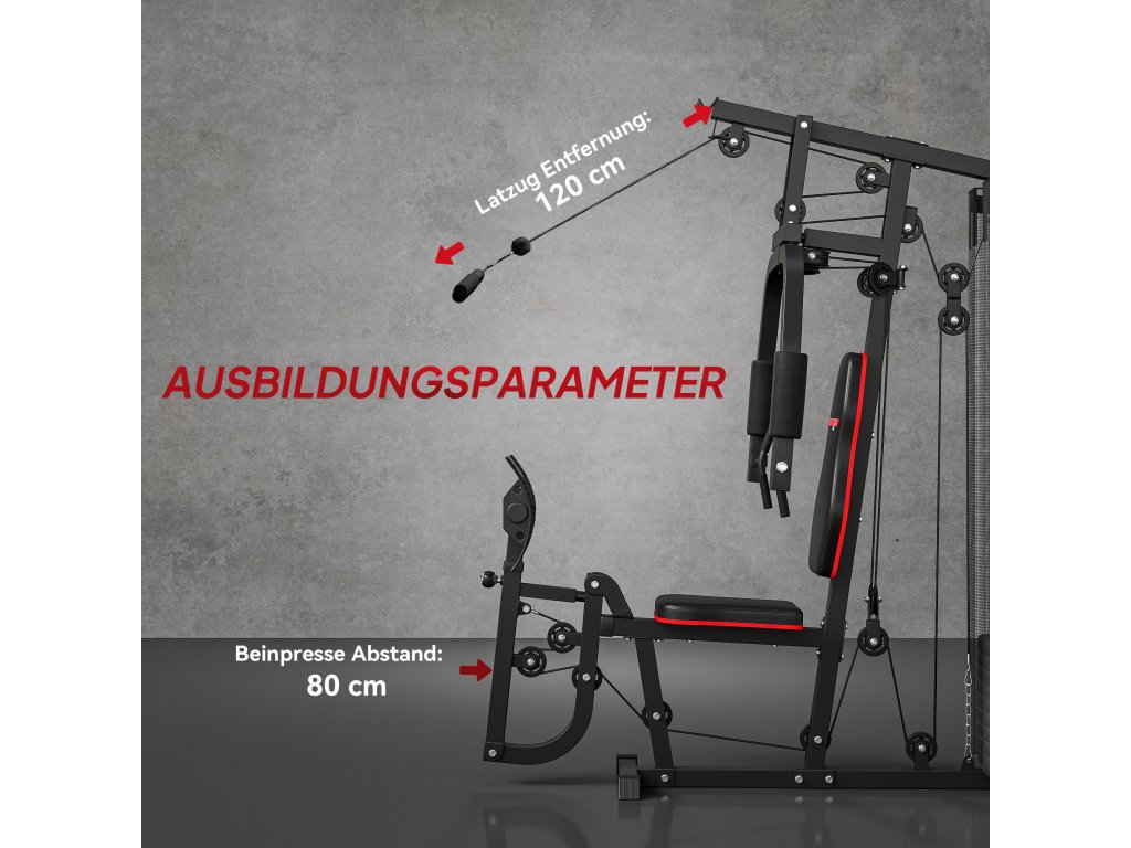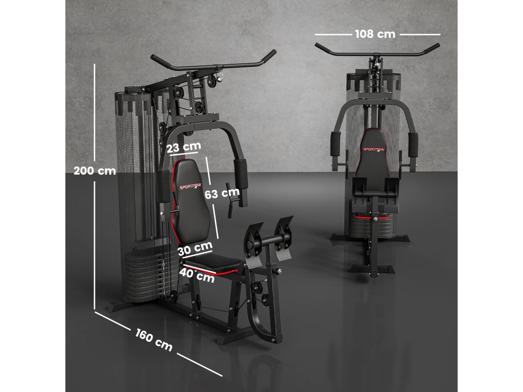 Rozměry posilovací stanice: 160 D x 108 Š x 200 V cm, nosnost: 120 kg, nutná montáž.