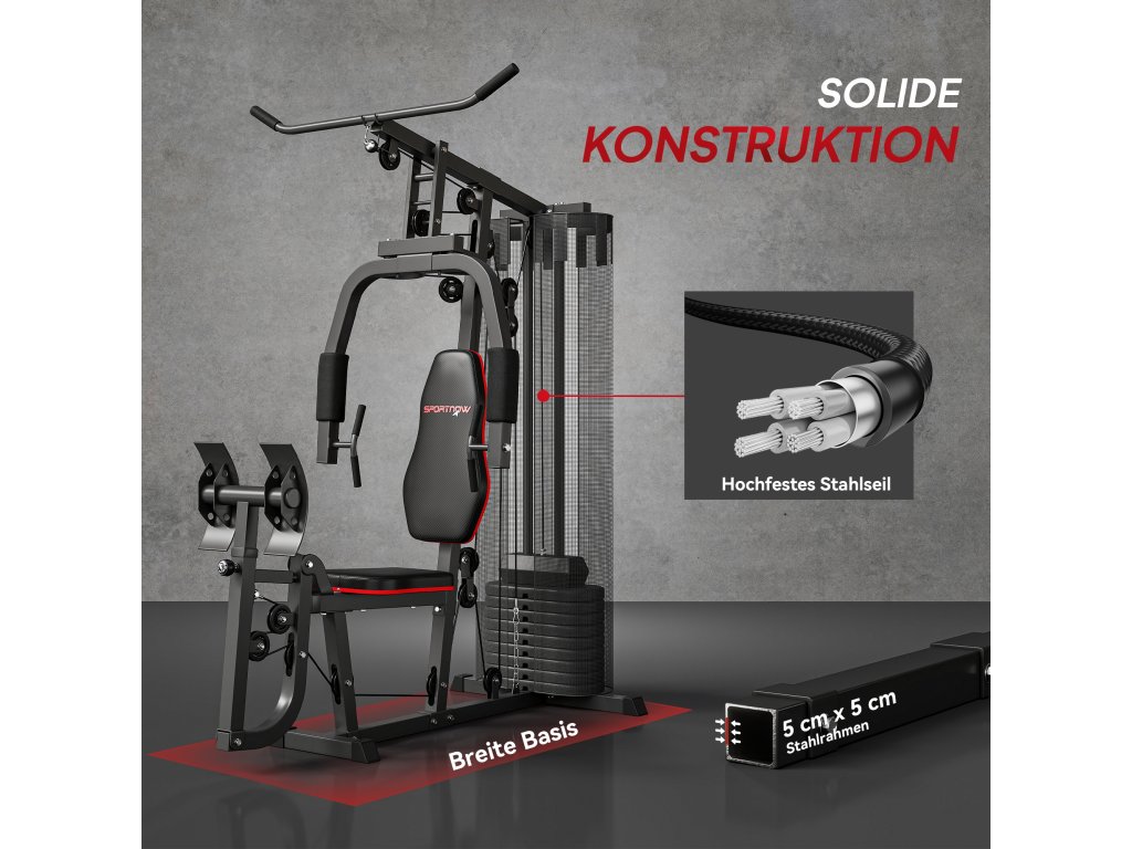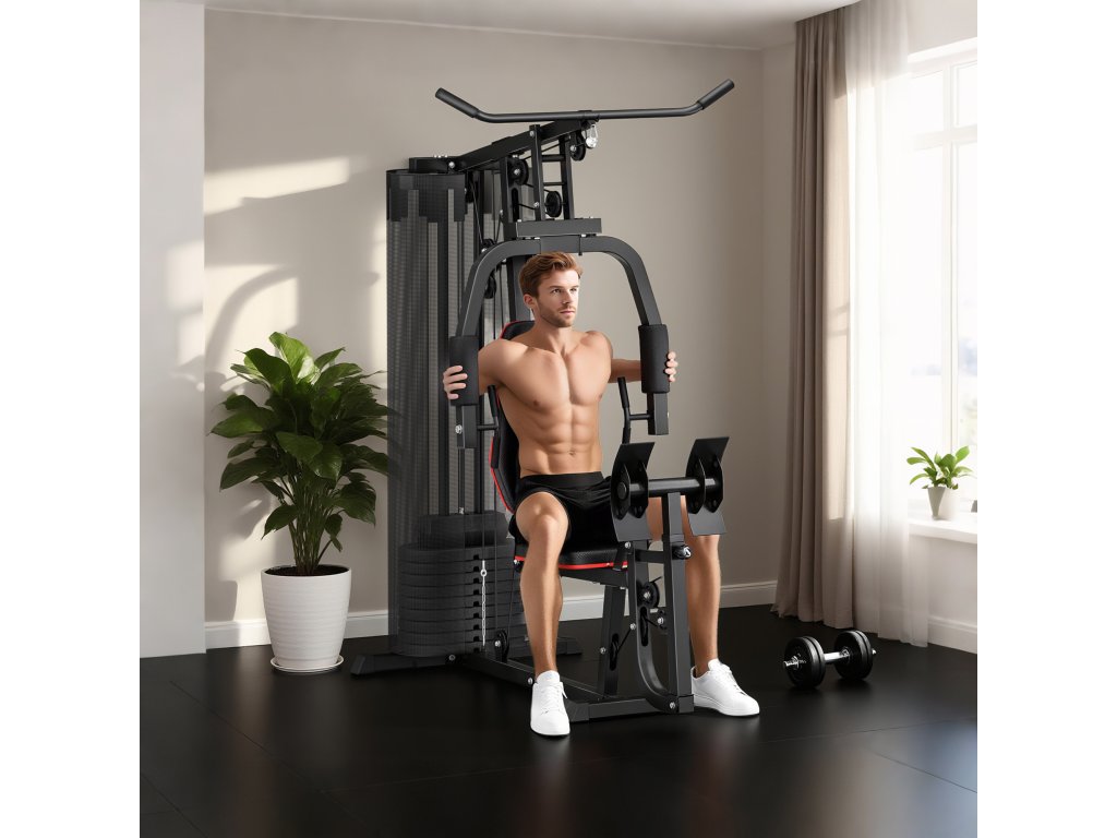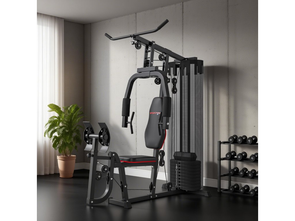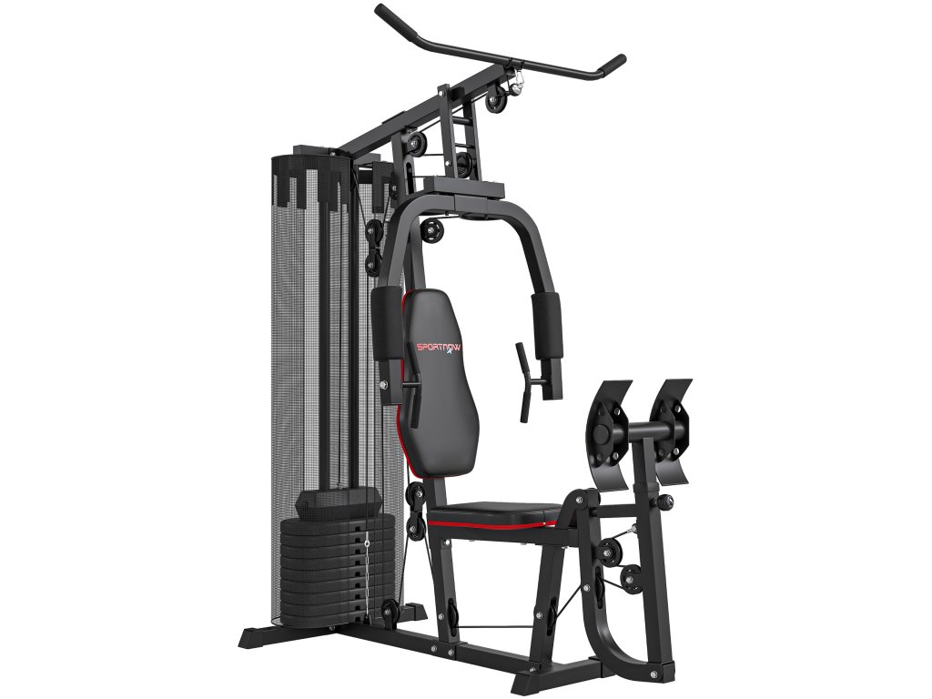 Domácí posilovací stanice SPORTNOW s bloky o hmotnosti 45 kg, stahováním z lana, posilovací stanicí na hrudník a tlakem na nohy pro všestranný trénink