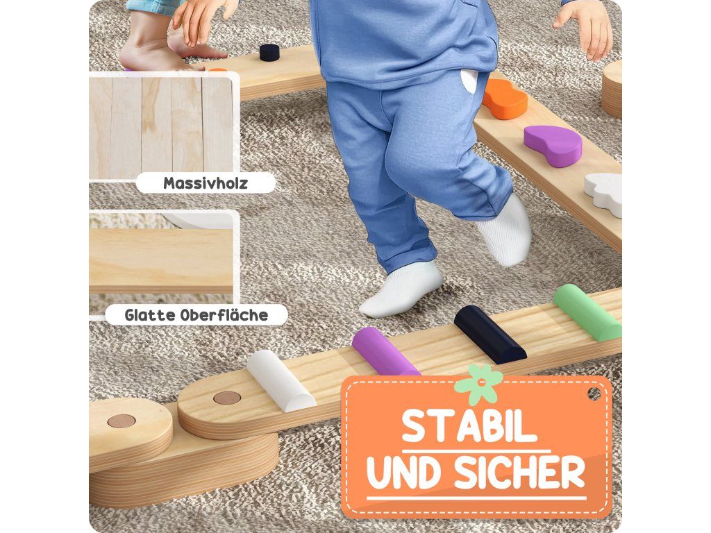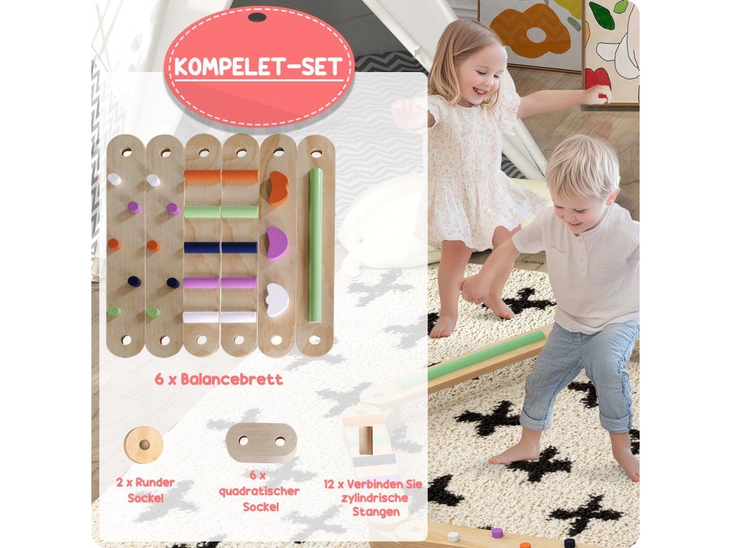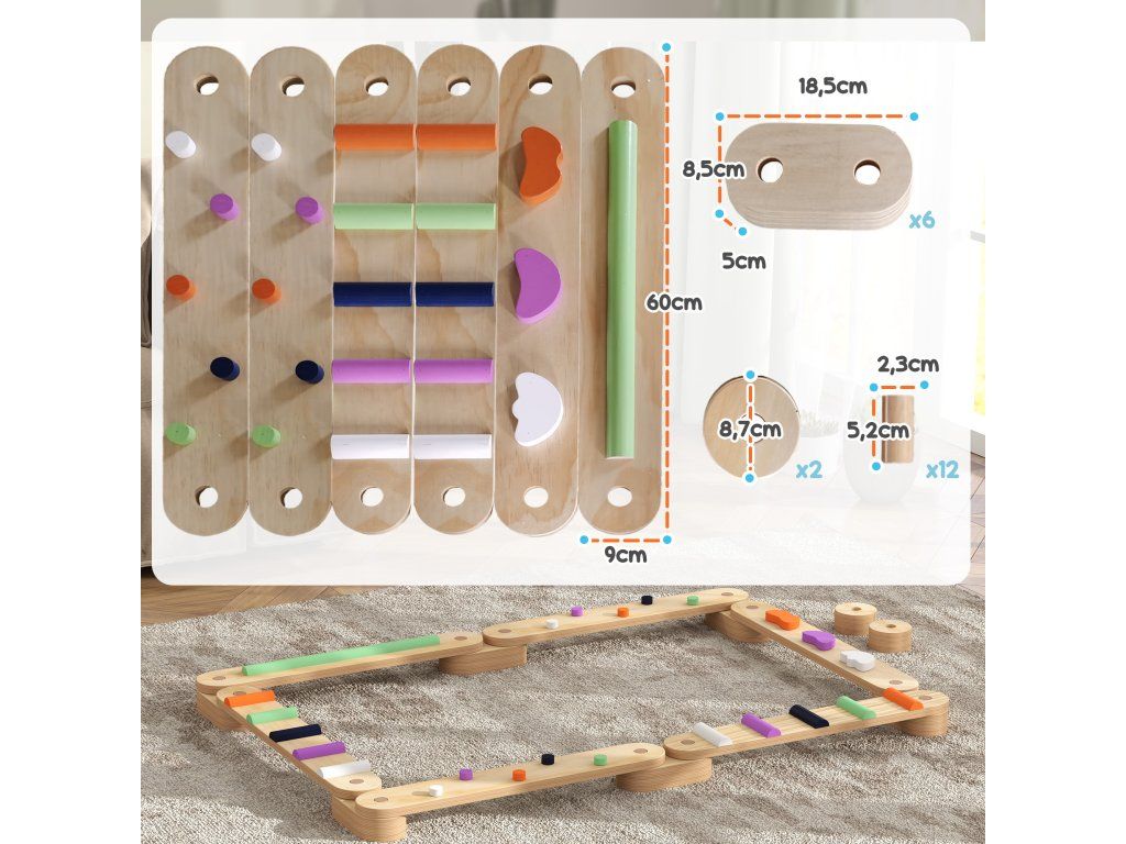 Se sadou kladin AIYAPLAY si vaše děti užijí dokonalou zábavu z pohybu! Tato dřevěná kladina hravě trénuje rovnováhu a lze ji tvarovat do mnoha tvarů. Díky oboustrannému, barevnému designu nabízí vzrušující možnosti pro malé dobrodruhy ve věku 3–8 let, ať už uvnitř nebo venku.