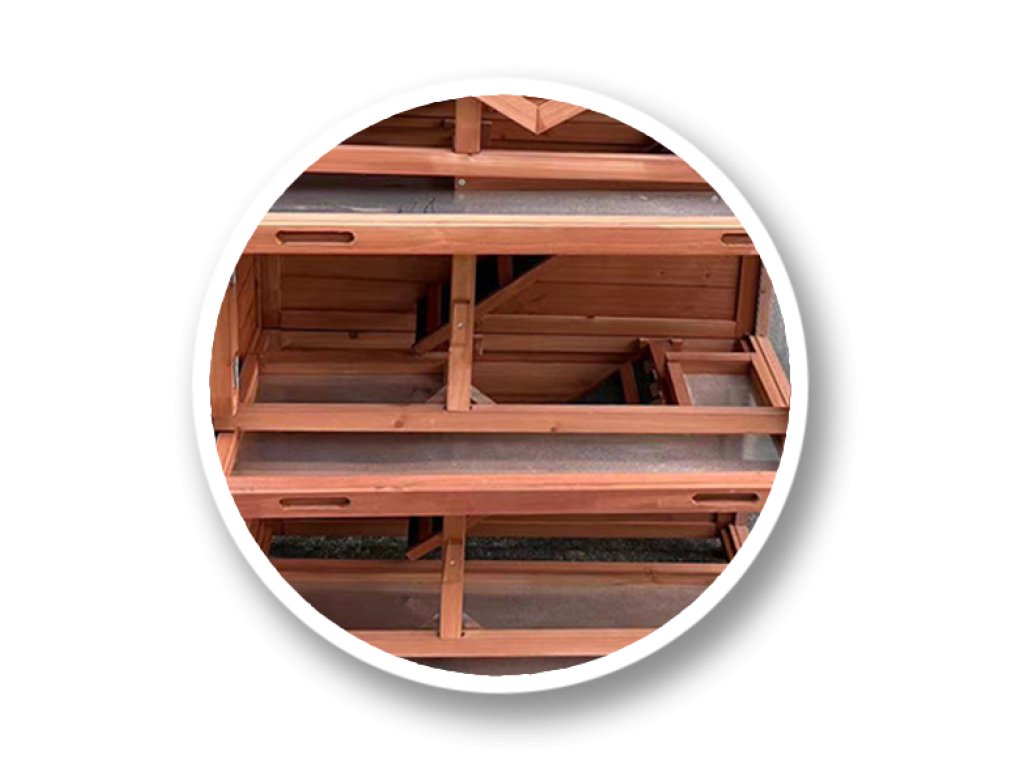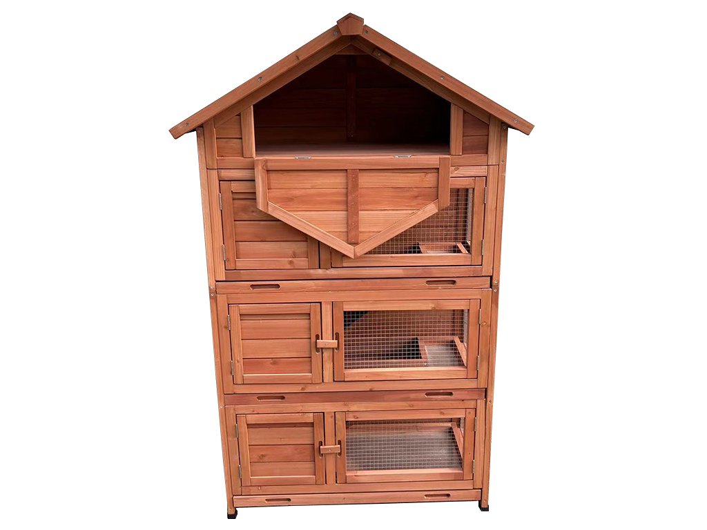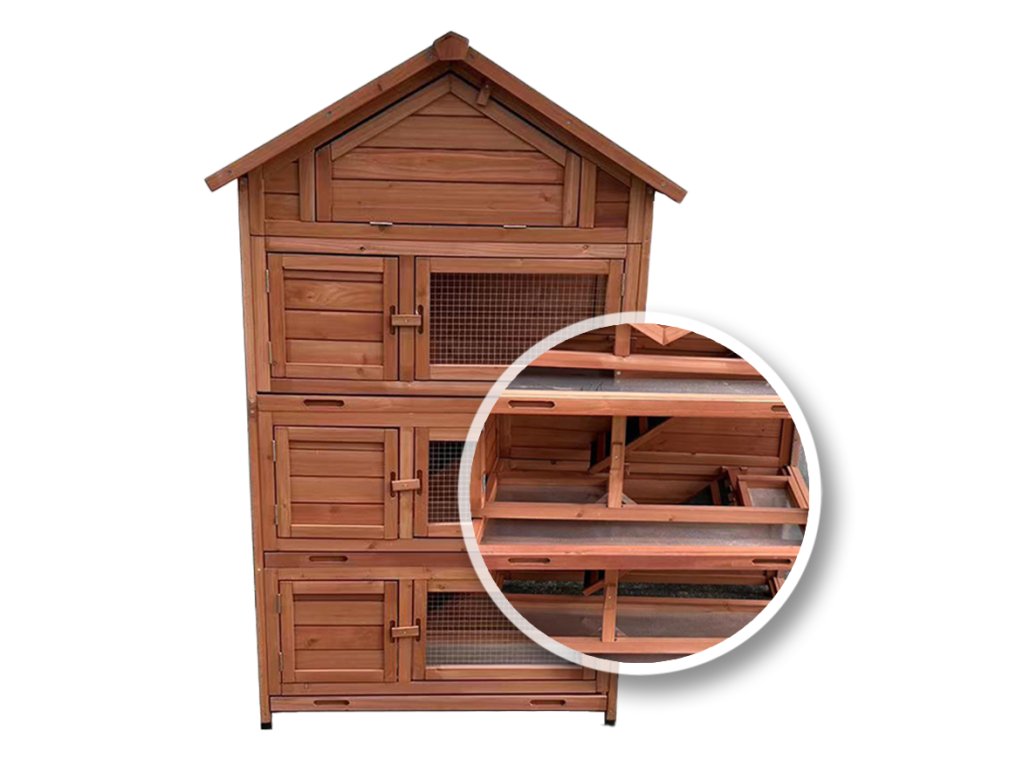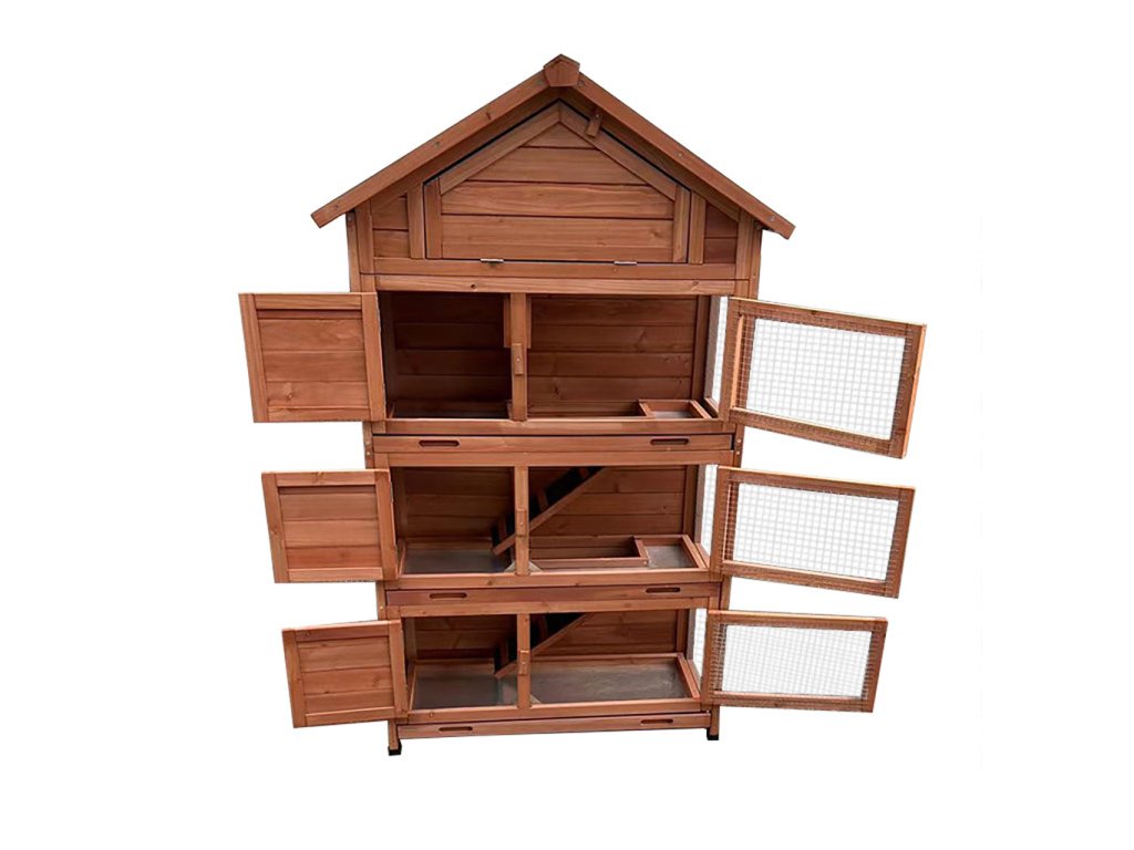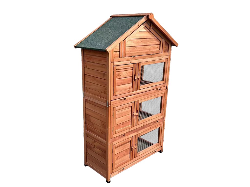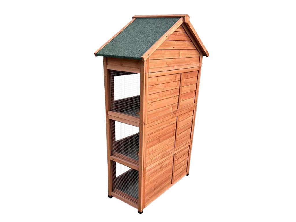 Dřevěná králíkárna AGROFORTEL FLORENCIE je vhodná pro ubytování 3 králíků. Je ideální pro tři standardní králíky a vyniká skvělým poměrem ceny a kvality. Králíkárna je vybavena třemi kotci. Střecha od horního kotce je výklopná na panty a je potažená asfaltovým pásem proti povětrnostním vlivům. Králíkárna je vyrobena ze smrkového dřeva.