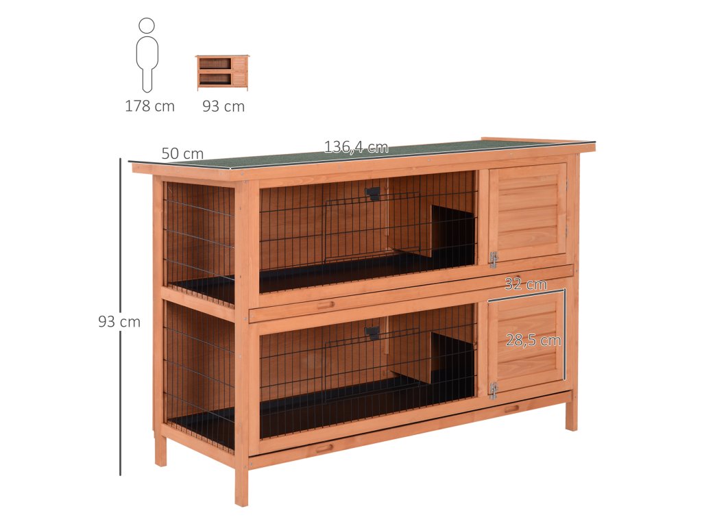 Dřevěná králíkárna Hugano, 1364x500 x930 mm