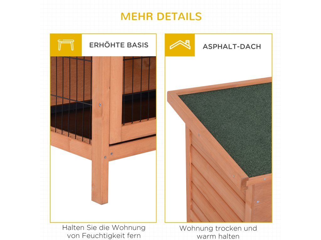 Vysoká kvalita: Klec pro malá zvířata je vyrobena z robustního jedlového dřeva a má vodoodpudivou úpravu. Ideální domov pro morčata a další malá zvířata.