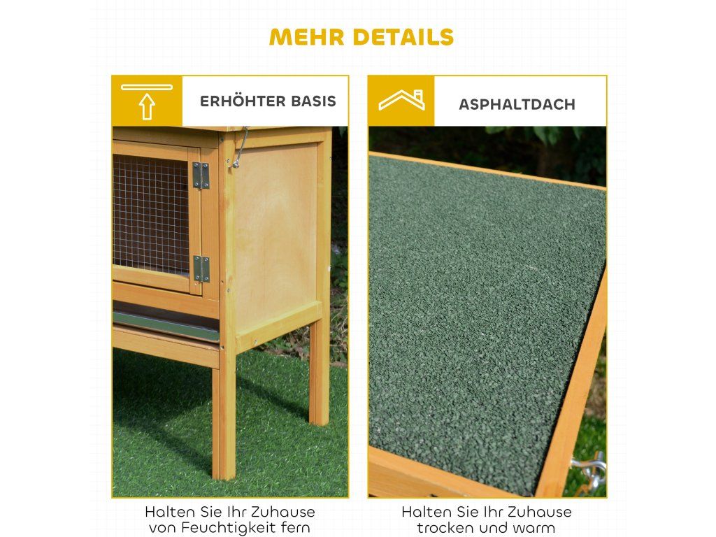 Zvýšený design: Zvýšený design králíkárny chrání vaše mazlíčky před chladem, vlhkem a predátory. POZNÁMKA: Počet zvířat, která se do králíkárny vejdou, určuje kupující na základě plemene a velikosti.