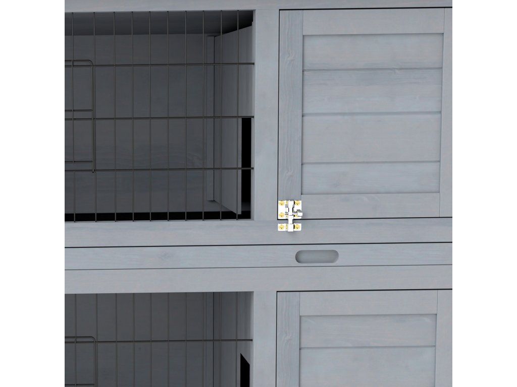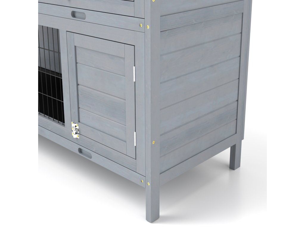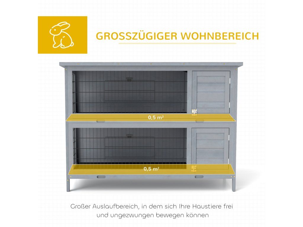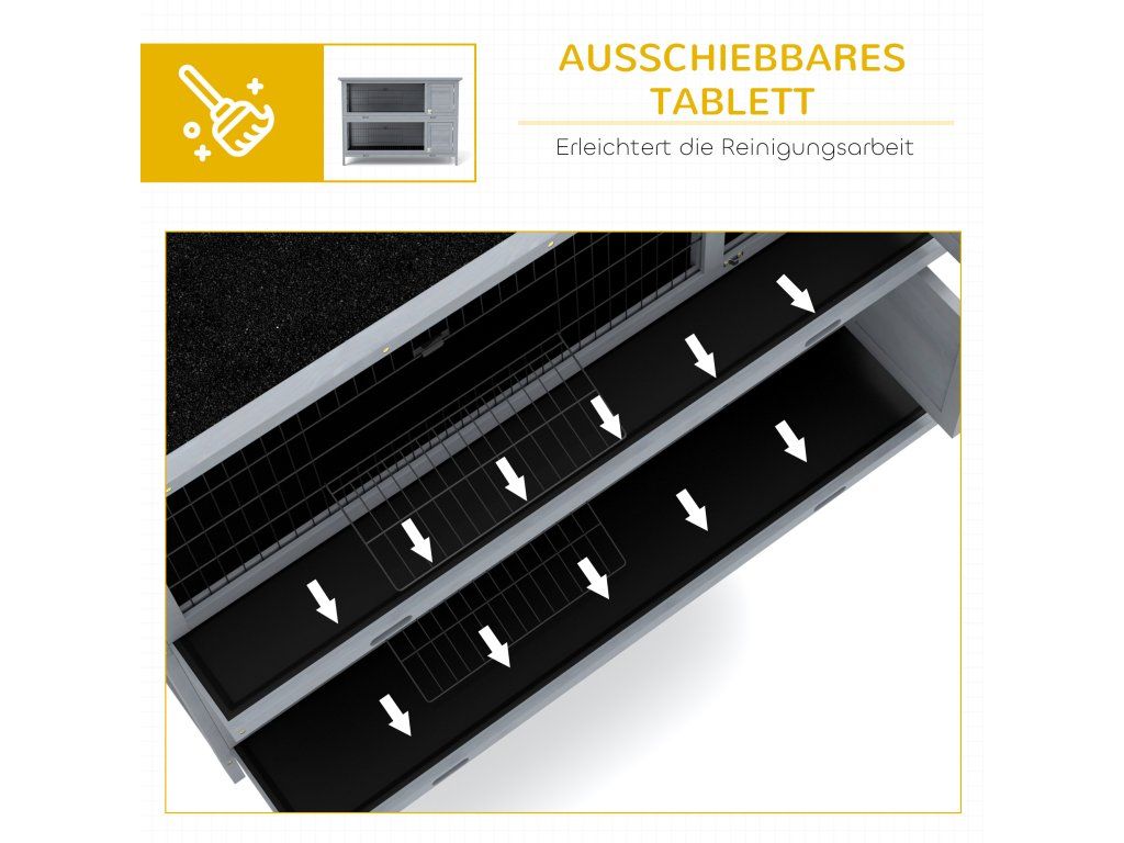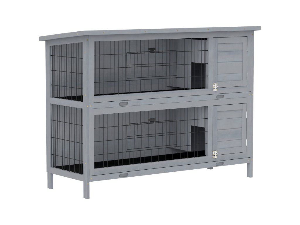 Dřevěná králíkárna PawHut se 2 úrovněmi, asfaltovou střechou, spodním tácem, dvířky pro malá zvířata, 136,4 x 50 x 93 cm, šedá