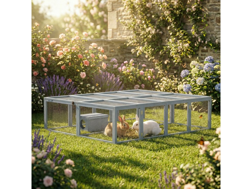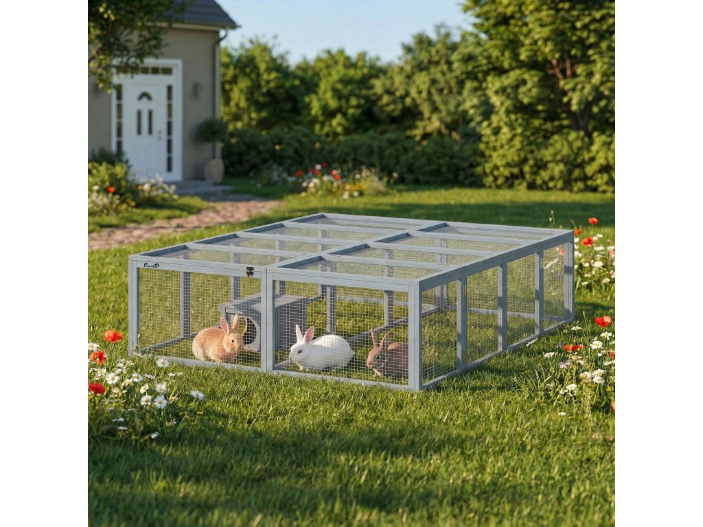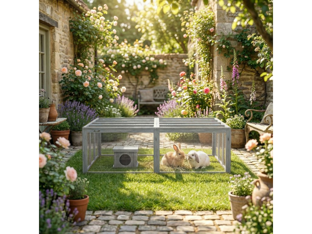 Modulární a flexibilní design: Snadno zkombinujte dvě králíkárny a vytvořte si extra velkou herní plochu nebo je používejte samostatně. Tento promyšlený design se bez problémů začlení do vaší zahrady a flexibilně se přizpůsobí potřebám vaší rodiny.