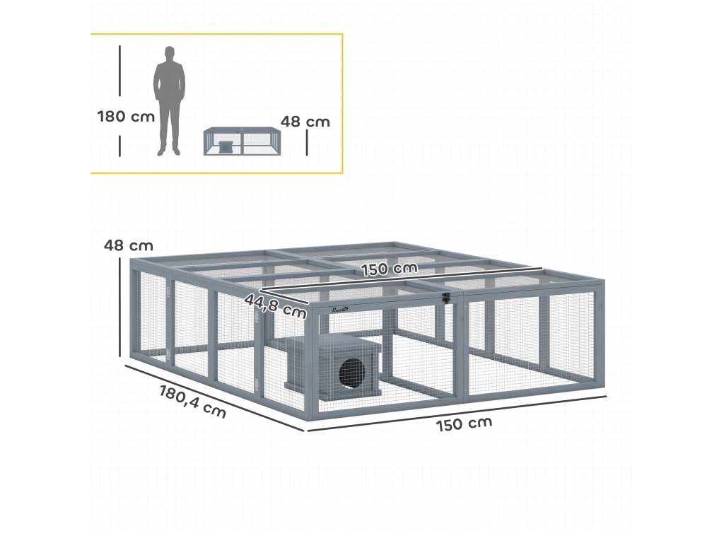 ✔ Rozměry výběhu: 180,4 D x 150 Š x 48 V cm