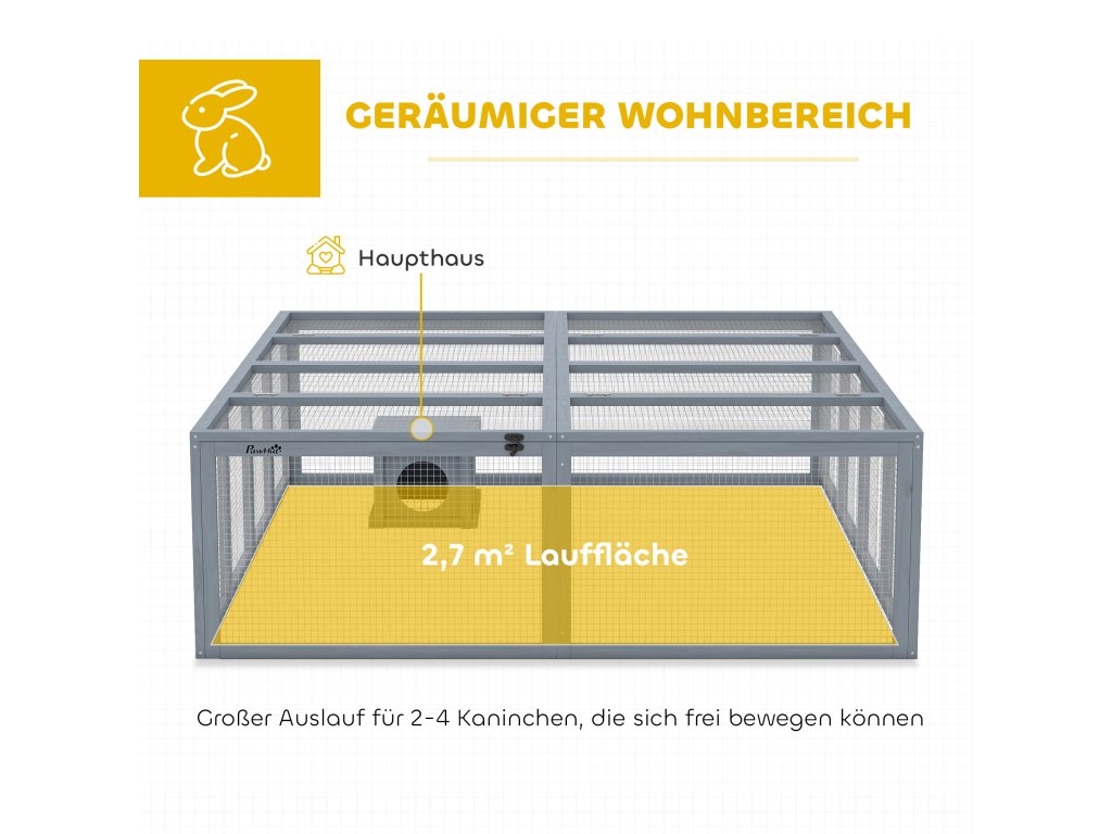 Trápí vás stísněná klec, která omezuje vaše zakrslé králíky a má nepraktický design? Obáváte se, že nemají dostatek prostoru, aby se cítili pohodlně? Králíkovna PawHut vytváří prostorný výběh o rozloze 2,7 m². Její modulární design se bez problémů začlení do vaší zahrady a díky dvěma velkým dvířkům v horní části je údržba hračka – užijte si vzácné chvíle s touto králíkárnou.