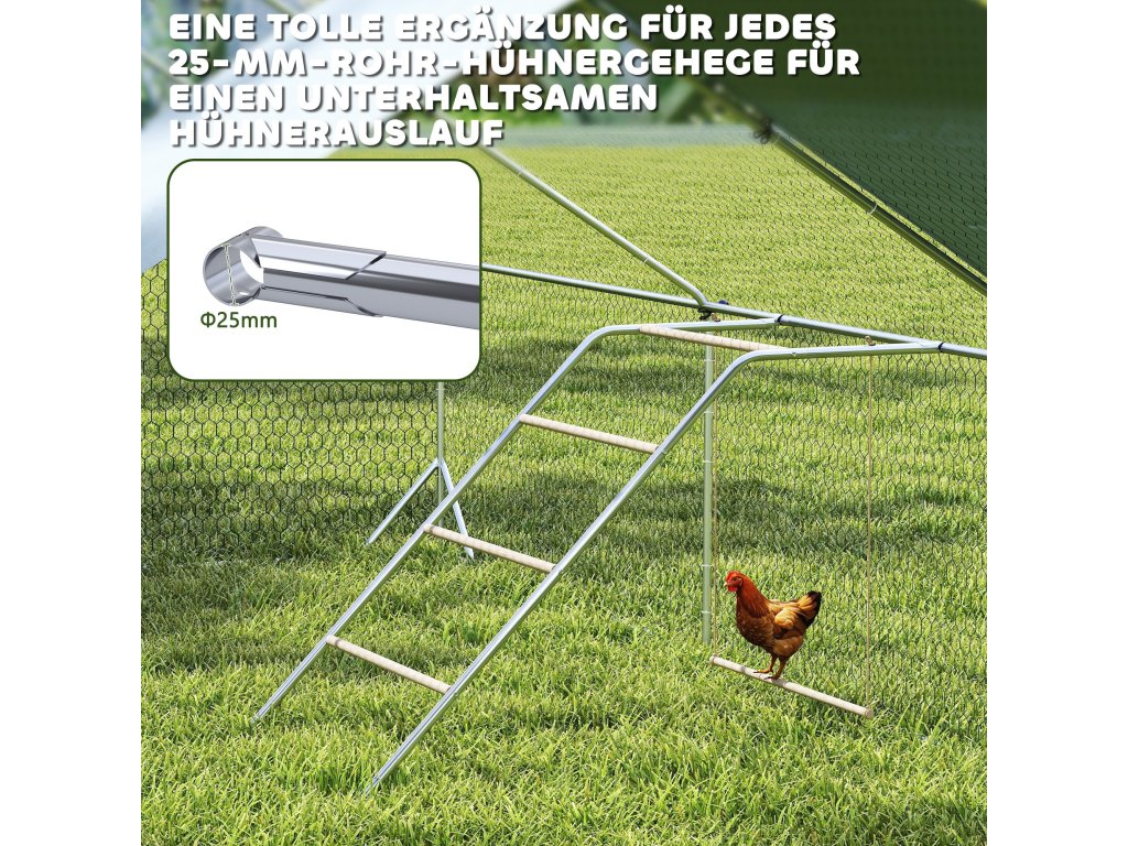 - Kompatibilní design: Toto hřiště pro kuřata, které je speciálně navrženo tak, aby dokonale ladilo s většinou výběhů Ø25 mm, hravě rozšíří venkovní prostor vašich kuřat a zvýší jejich aktivitu a pohodu.