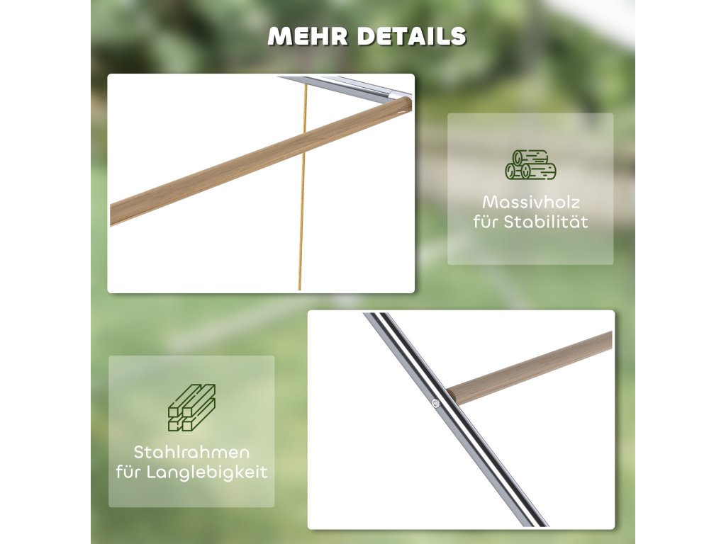 - ✔ Vyrobeno z pozinkované oceli a ošetřeného dřeva pro trvanlivost a odolnost proti korozi za každého počasí