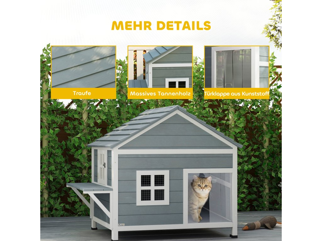 Ochrana za každého počasí: Robustní jedlové dřevo a nepromokavá střecha zvedají kočičí domek o 7,5 cm. Chrání vaše chlupaté kamarády nebo toulavé kočky před deštěm a chladným vánkem a udržují je v teple.
