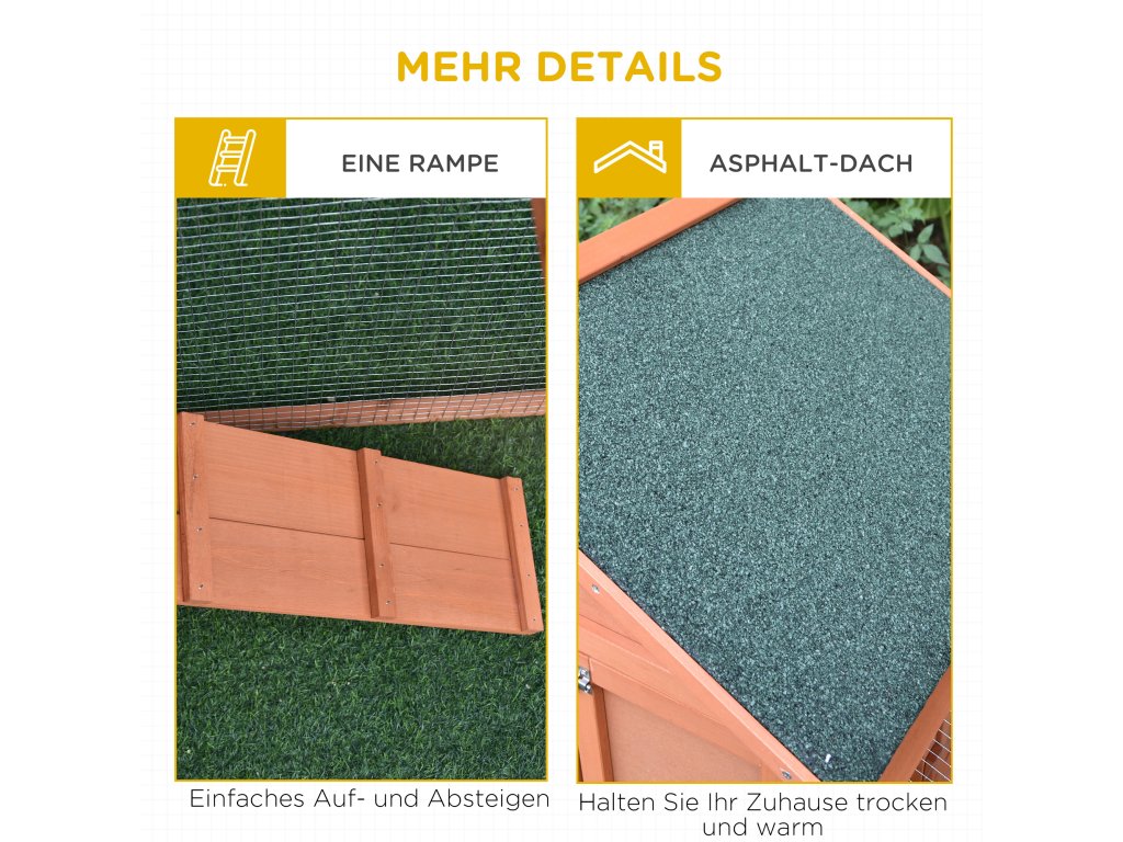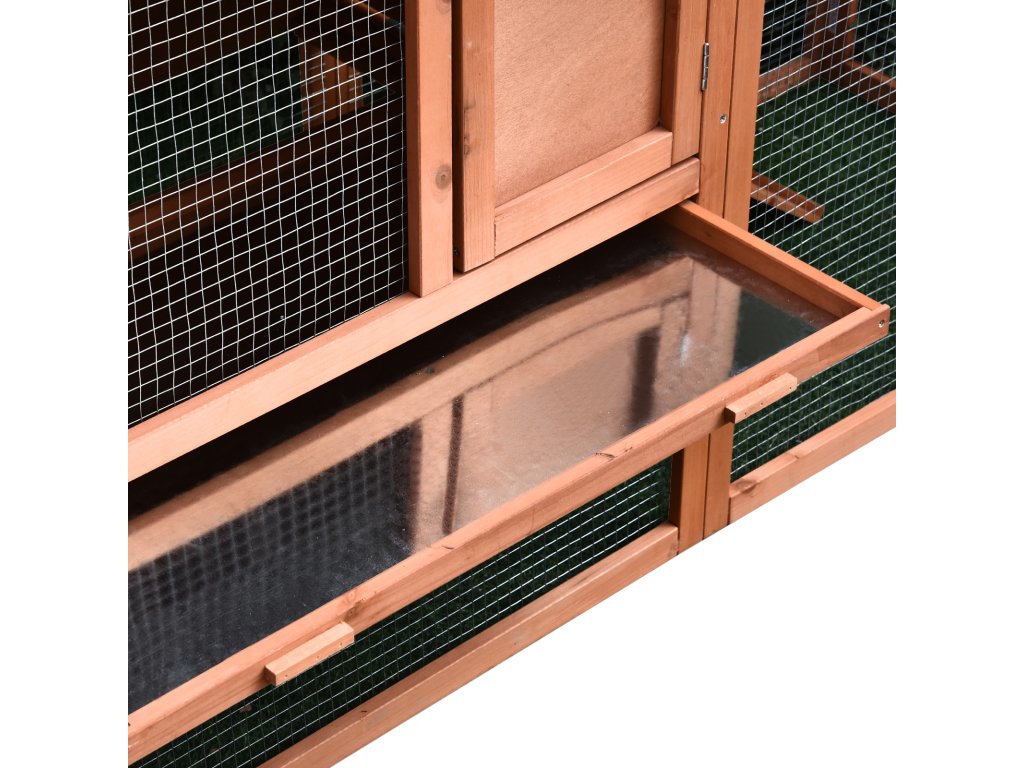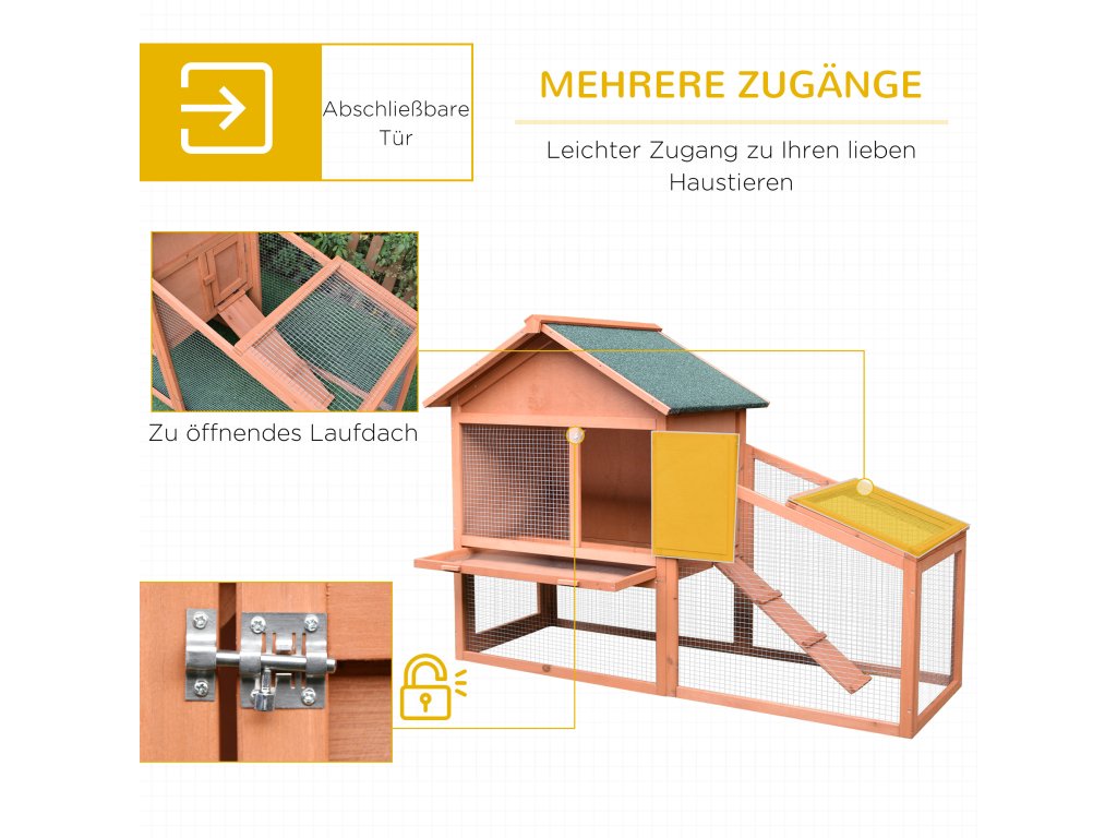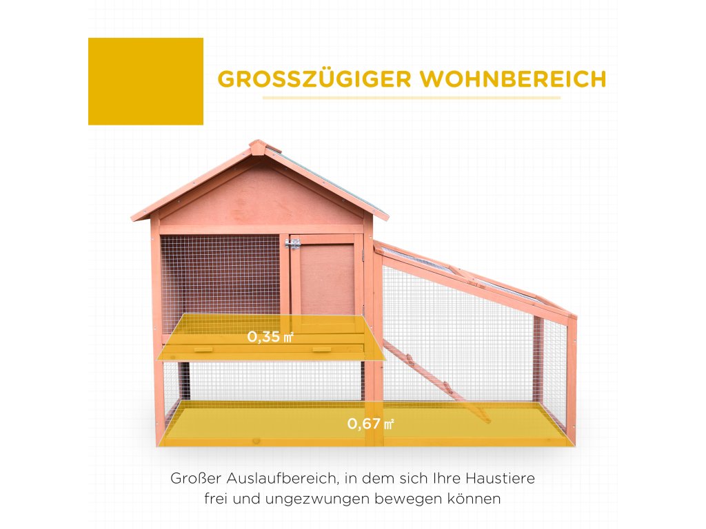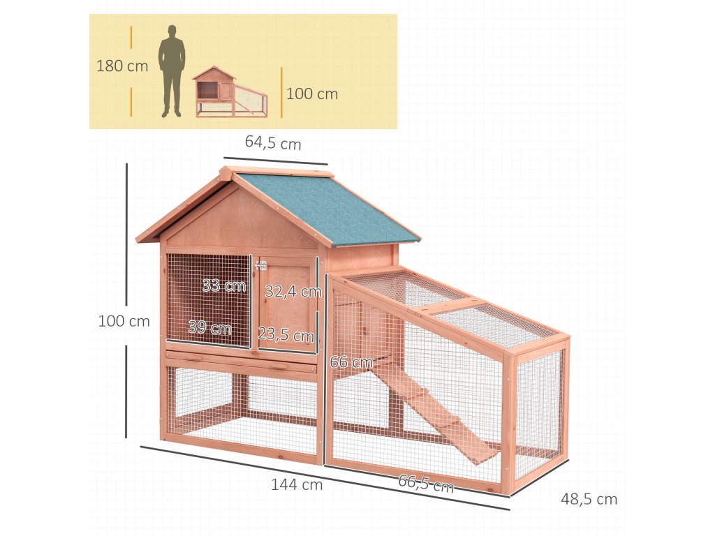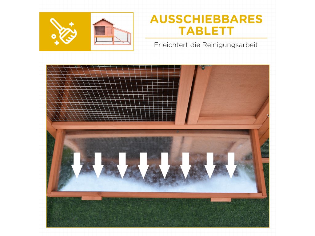 V kleci pro malá zvířata PawHut mají vaše malá zvířata chráněný domov a spoustu volnosti pohybu. Čištění je extrémně snadné díky velkým dveřím do interiéru a výsuvnému podlaze. Robustní konstrukce ze 100% masivního dřeva je opatřena lakem odolným vůči povětrnostním vlivům, takže můžete klec pro malá zvířata nechat na zahradě trvale bez obav. Dopřejte sobě i svým mazlíčkům trochu radosti!