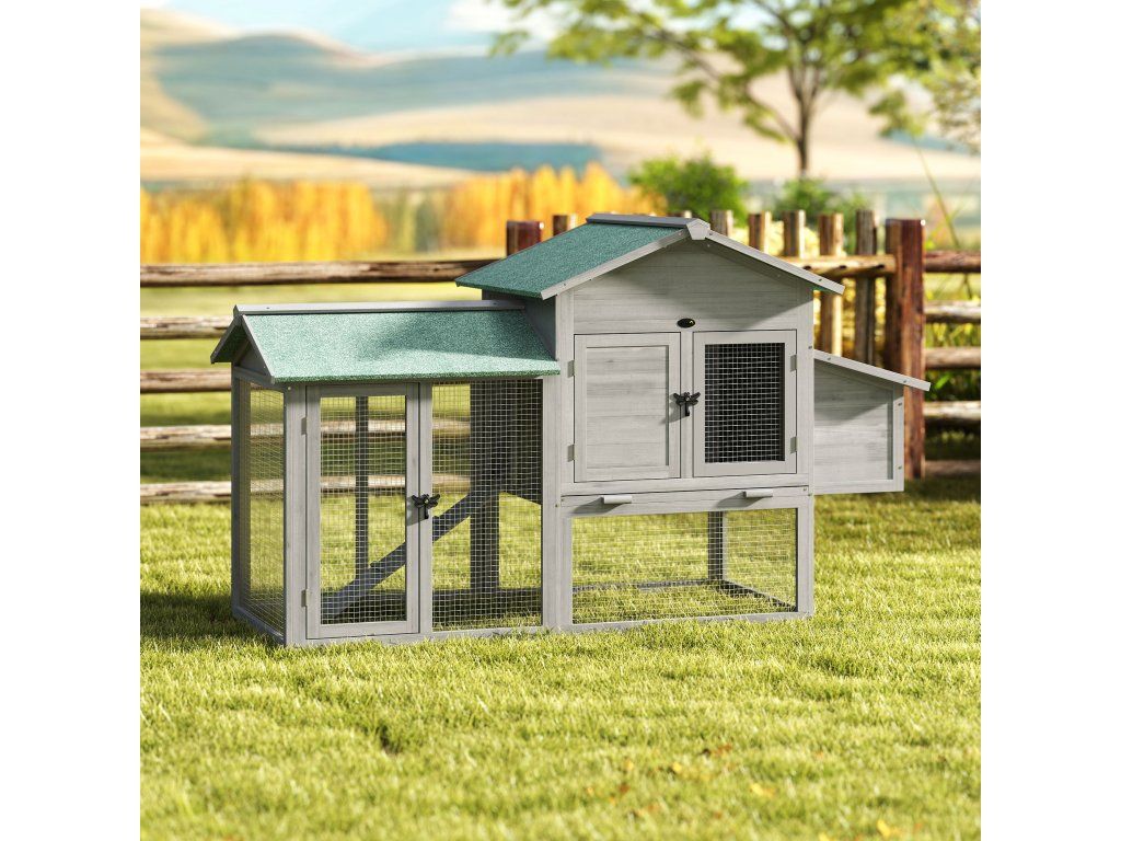 Zajistěte své drůbeži pohodlný obytný prostor s kurníkem PawHut! Útulný interiér připomínající dům a prostorný výběh nabízejí vašim zvířatům dostatek prostoru. Horní patro poskytuje soukromí a klid, zatímco spodní patro nabízí více prostoru pro pohyb. Vnitřní rampa umožňuje snadný přístup. Uzamykatelné dveře a výsuvná zásuvka usnadňují čištění a krmení. Střecha hnízdní budky se otevírá pro snadný sběr vajec.