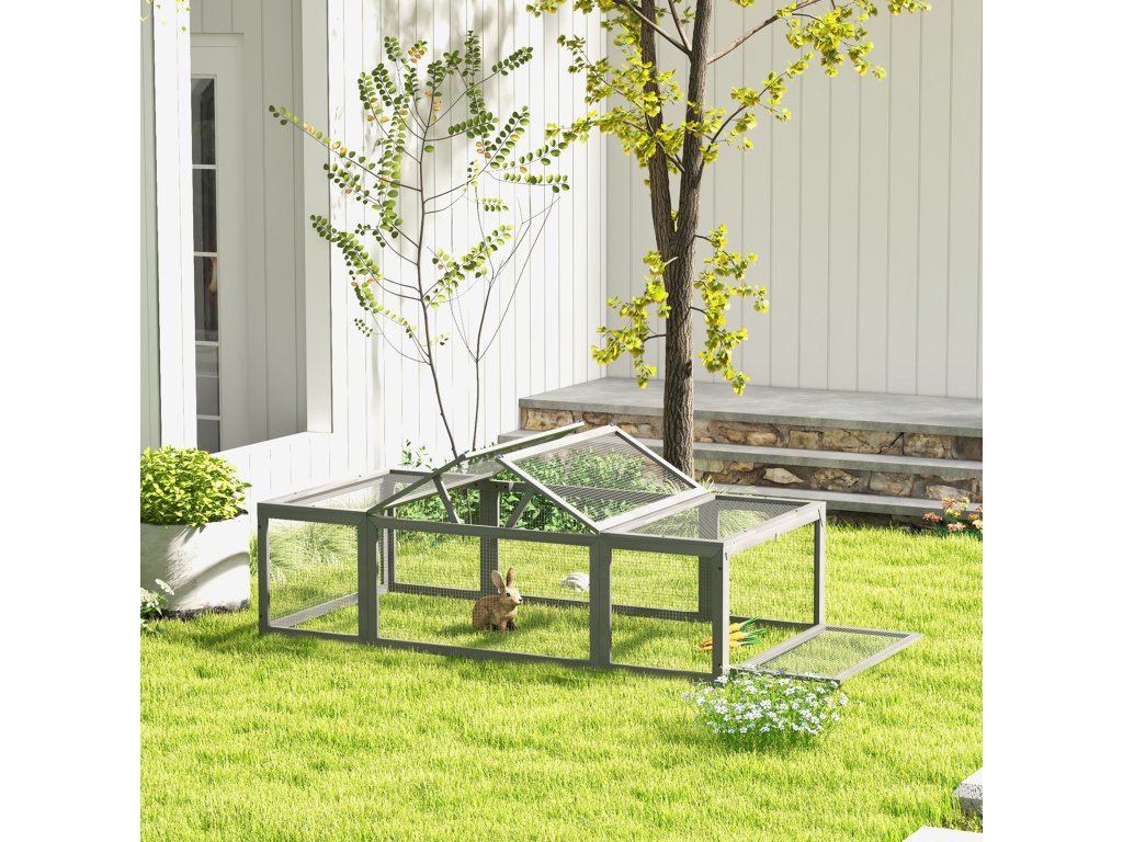 Tato velká zimní venkovní králíkárna od Pawhutu nabízí vašim malým zvířátkům možnost hrát si, jíst a spát na čerstvém vzduchu. Zimní venkovní králíkárna je vyrobena z utěsněného, robustního a odolného jedlového dřeva a drátěného pletiva. Střechu a boční síťovaný panel lze snadno otevřít pro snadné krmení a péči. Ohrada pro malá zvířata je nejen stabilní, ale také odolná vůči povětrnostním vlivům. Tato klec pro králíky je ideálním hracím místem pro vaše malá zvířata.