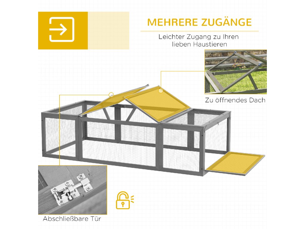 Vysoce kvalitní zpracování: Venkovní klece pro malá zvířata je vyrobena z uzavřeného jedlového dřeva a drátěného pletiva. Mřížka umožňuje dostatečné větrání a dobrý výhled.