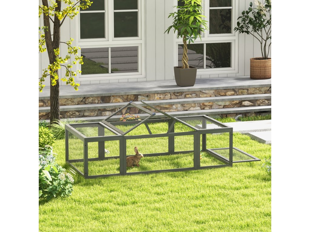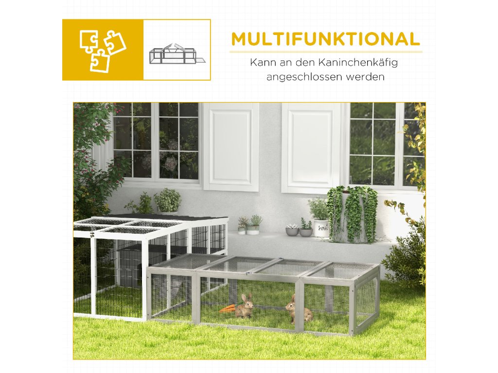 ✔ Venkovní výběh lze použít v kombinaci s venkovní králíkárnou
