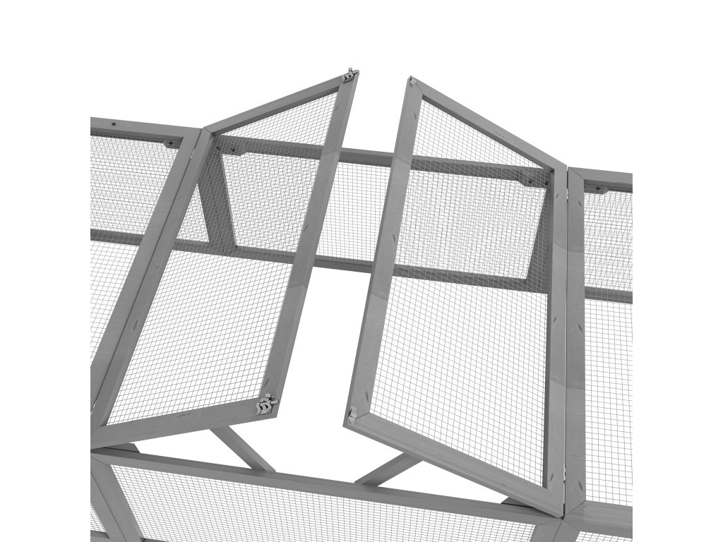 ✔ Střechu a jeden boční panel venkovní králíkárny lze otevřít