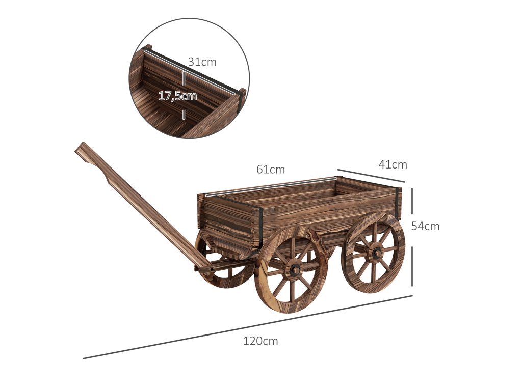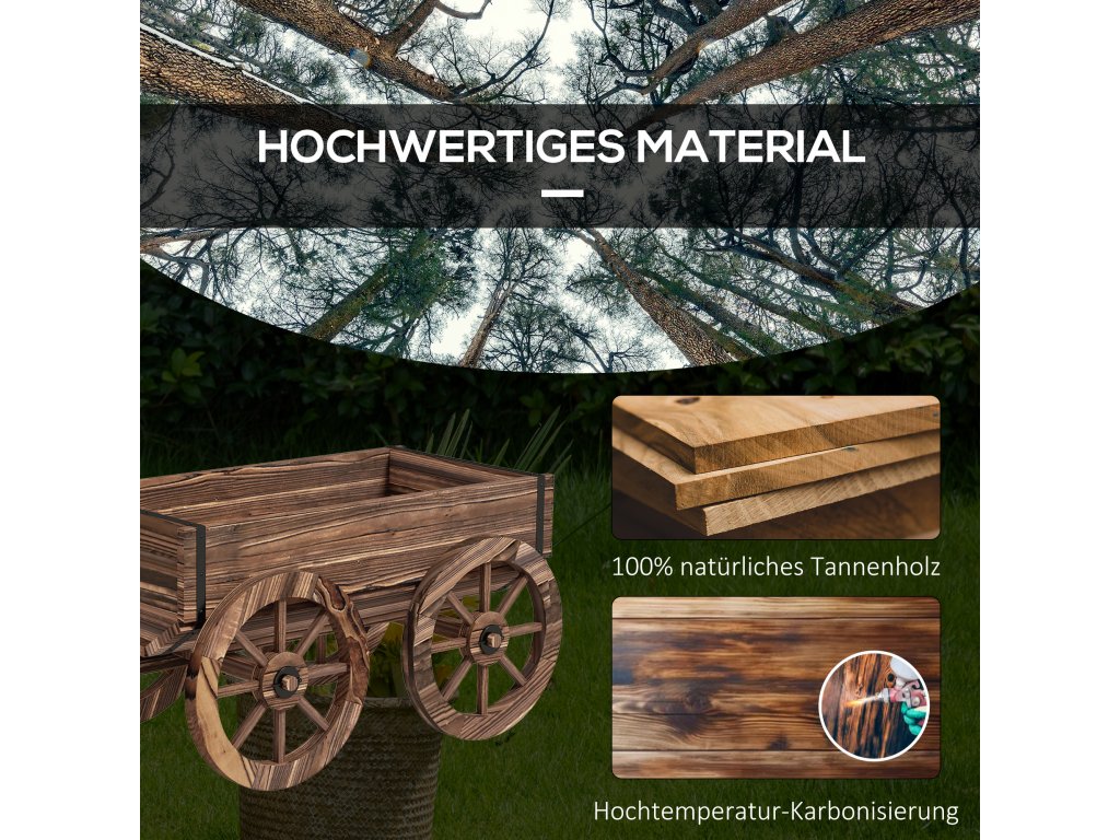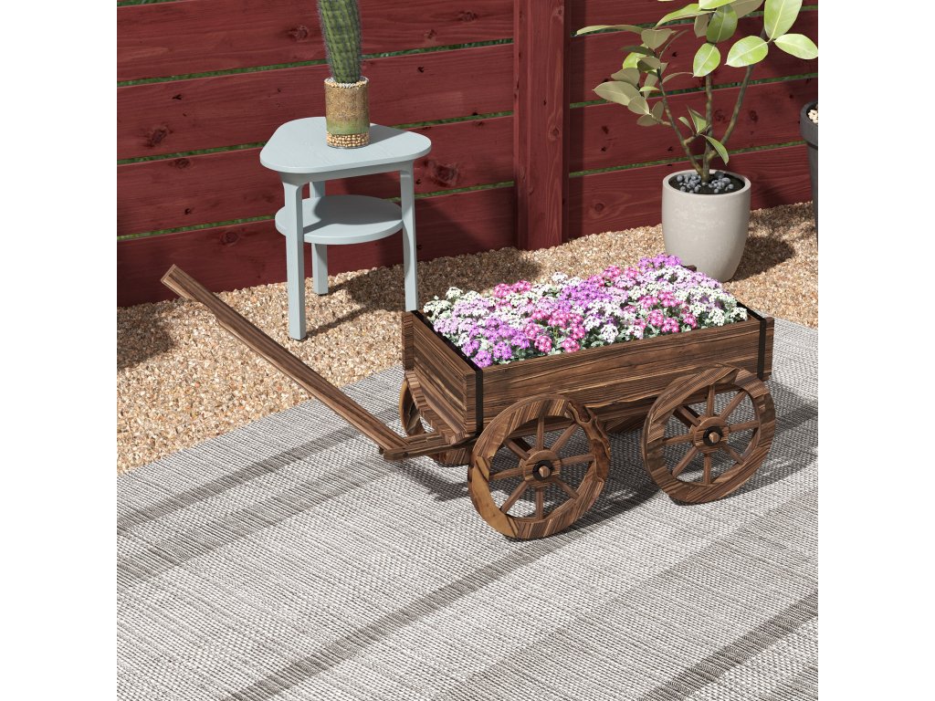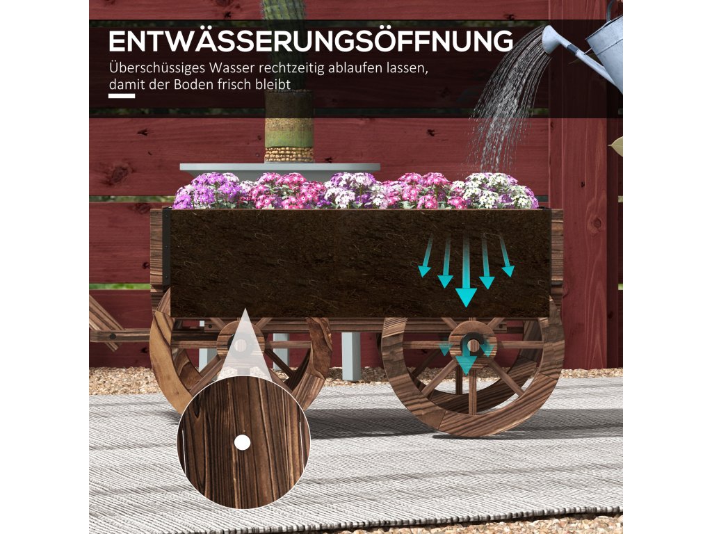 - Pohodlná mobilita: Zahradní květináč lze díky 4 dřevěným kolečkům a dlouhé rukojeti snadno přemístit na libovolné místo.